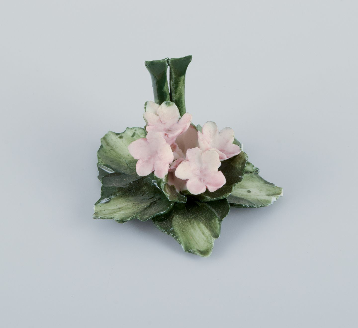 Capodimonte, Italien, et sæt på seks bordkortholdere i porcelæn udformet som åkander. Hånddekoreret. I overglasur.