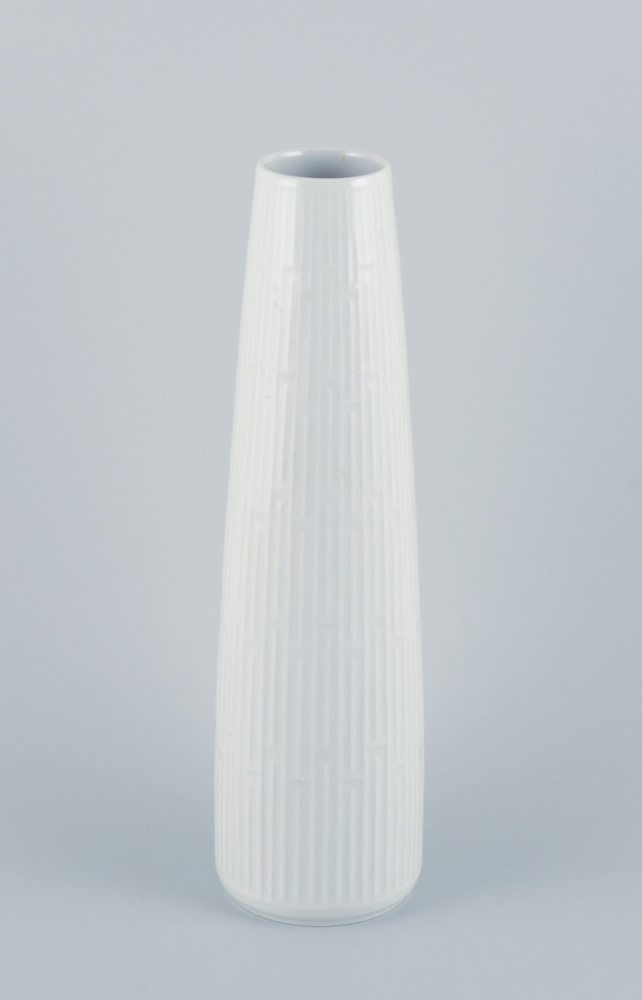 Hans Merz for Meissen, stor porcelænsvase i moderne design med geometriske felter og hvid glasur.