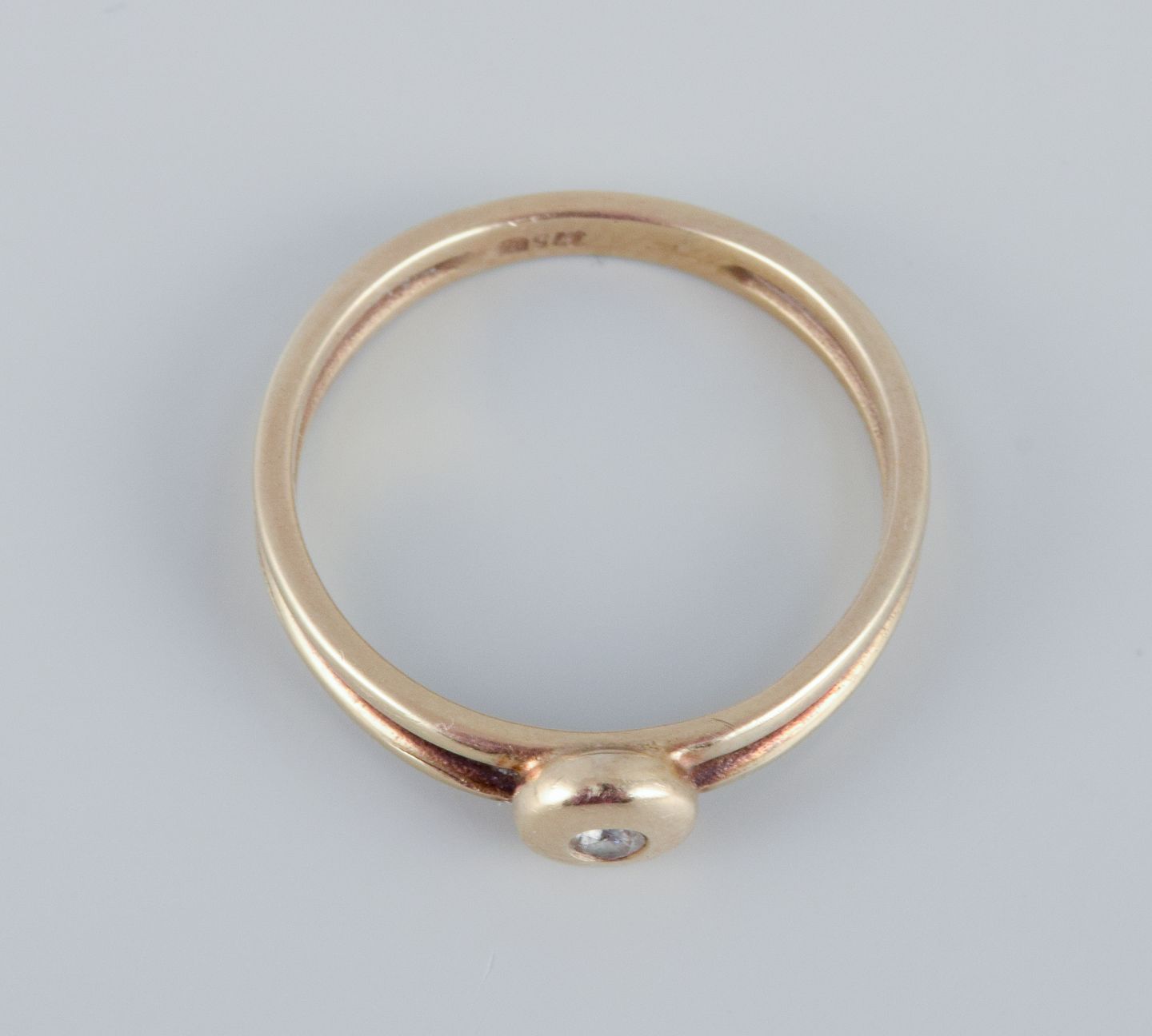 9 karat guldring med lille brilliant i modernistisk design. Midt 1900-tallet. Stemplet. I flot stand Ringstørrelse: 18 mm.