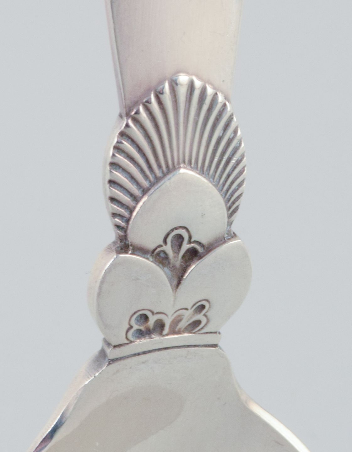 Georg Jensen, Kaktus, et sæt på seks middagsskeer i sterlingsølv. 1933-1944 stempel. I flot stand. Mål: L 19,0 cm.