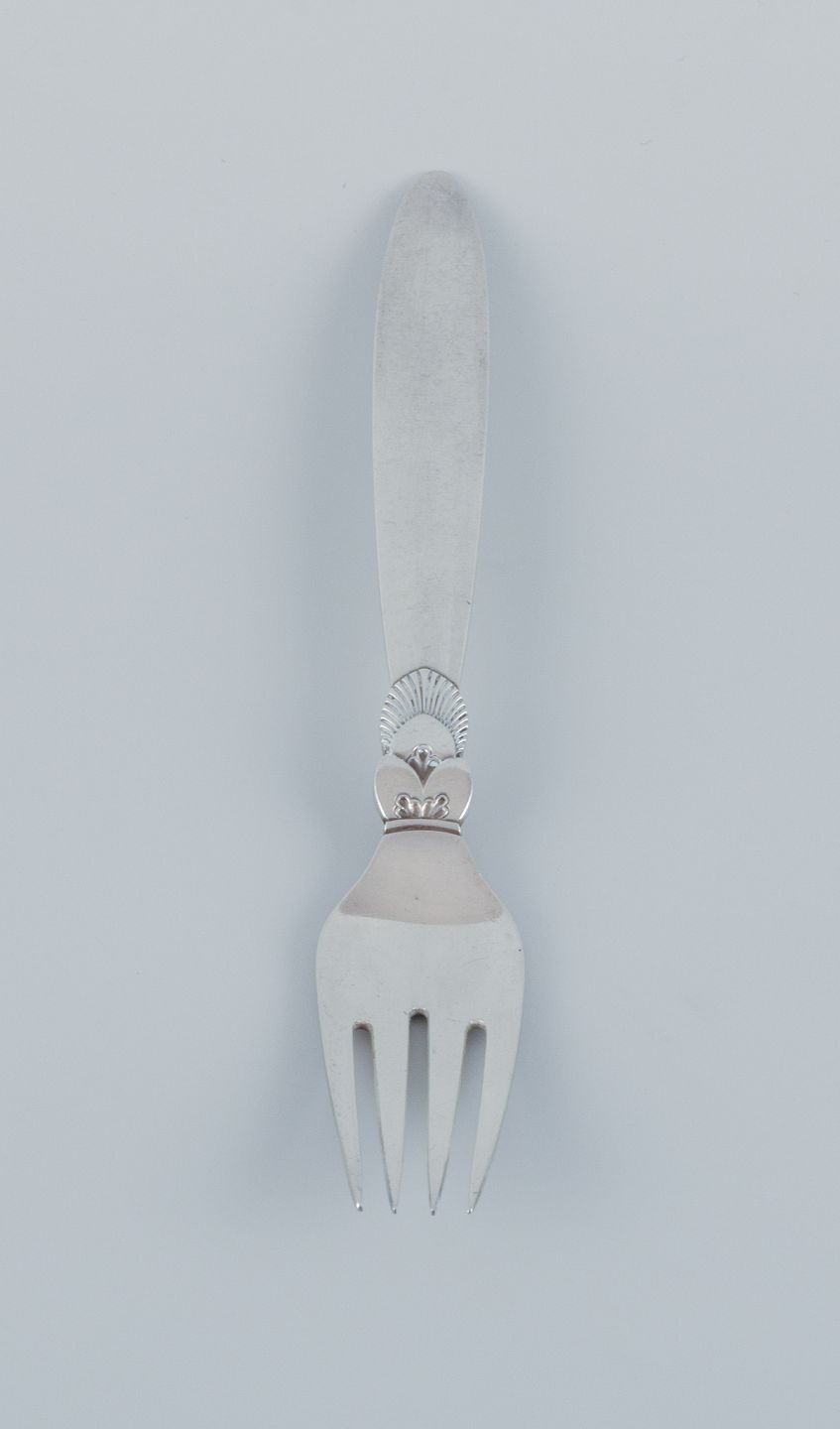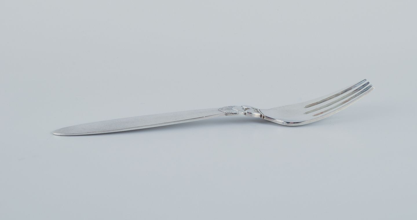 Georg Jensen, Kaktus , et sæt på ni middagsgafler i sterlingsølv. Efter 1944 stempel. I flot stand. Mål: L 18,4 cm.
