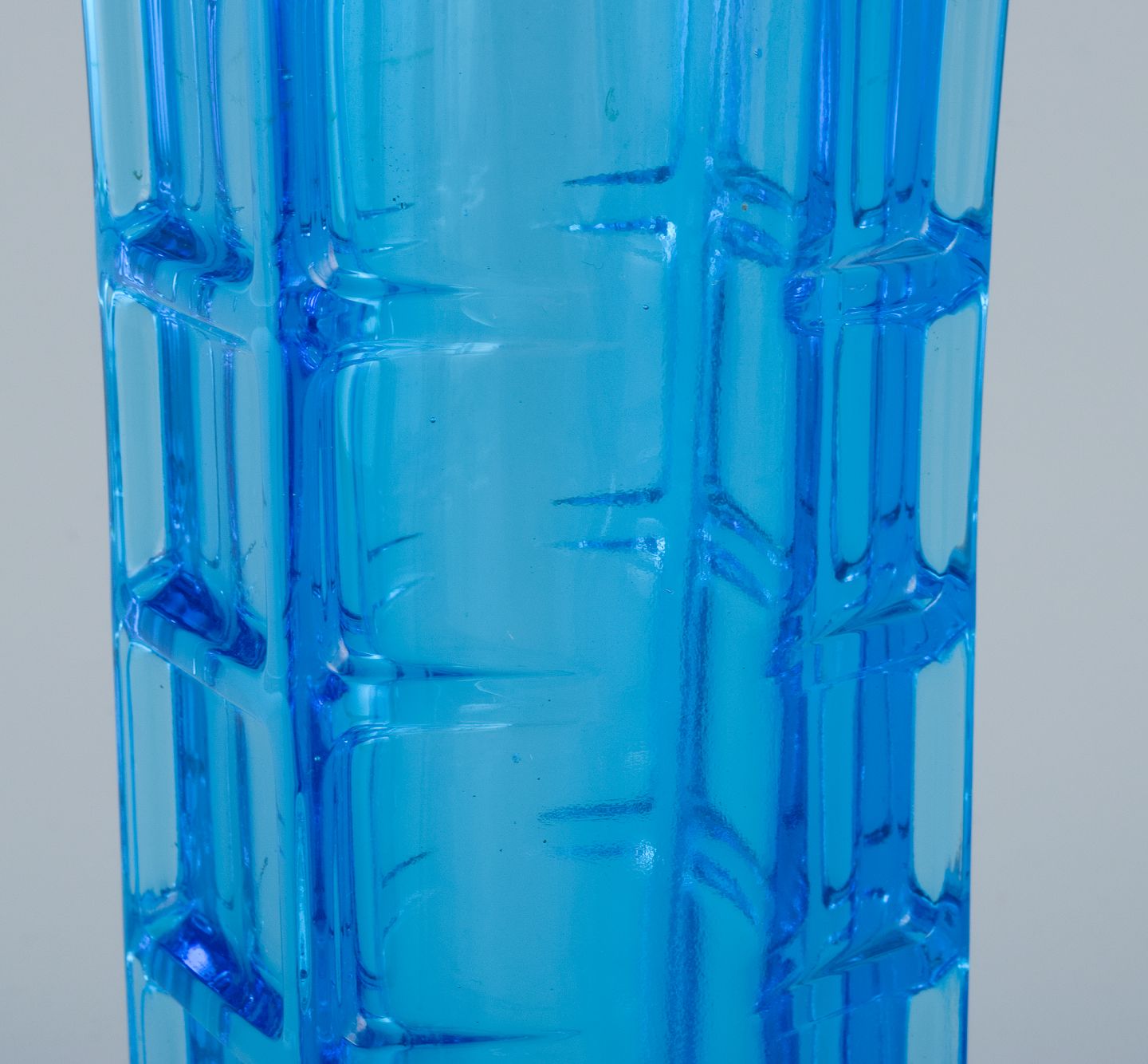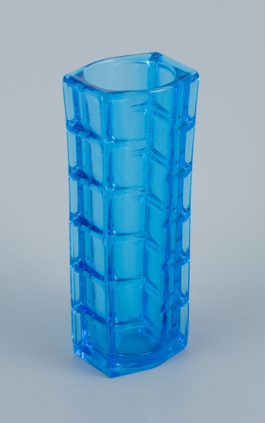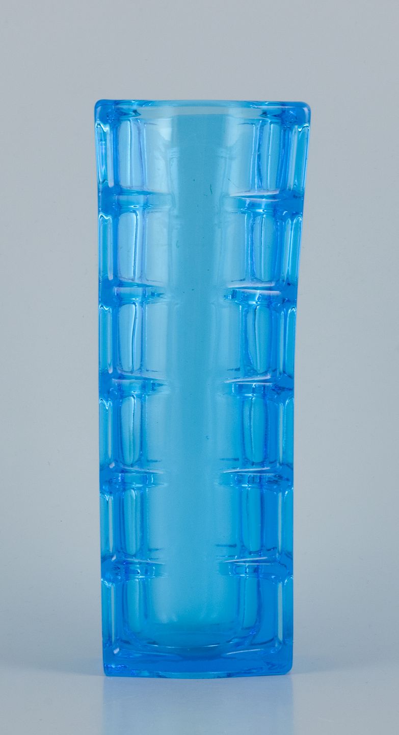Gullaskruf, Sverige, kunstglasvase i blåt glas. Modernistisk design. Sent 1900-tallet. Perfekt stand. Mål: H 20,0 cm. x D 6,8 cm.