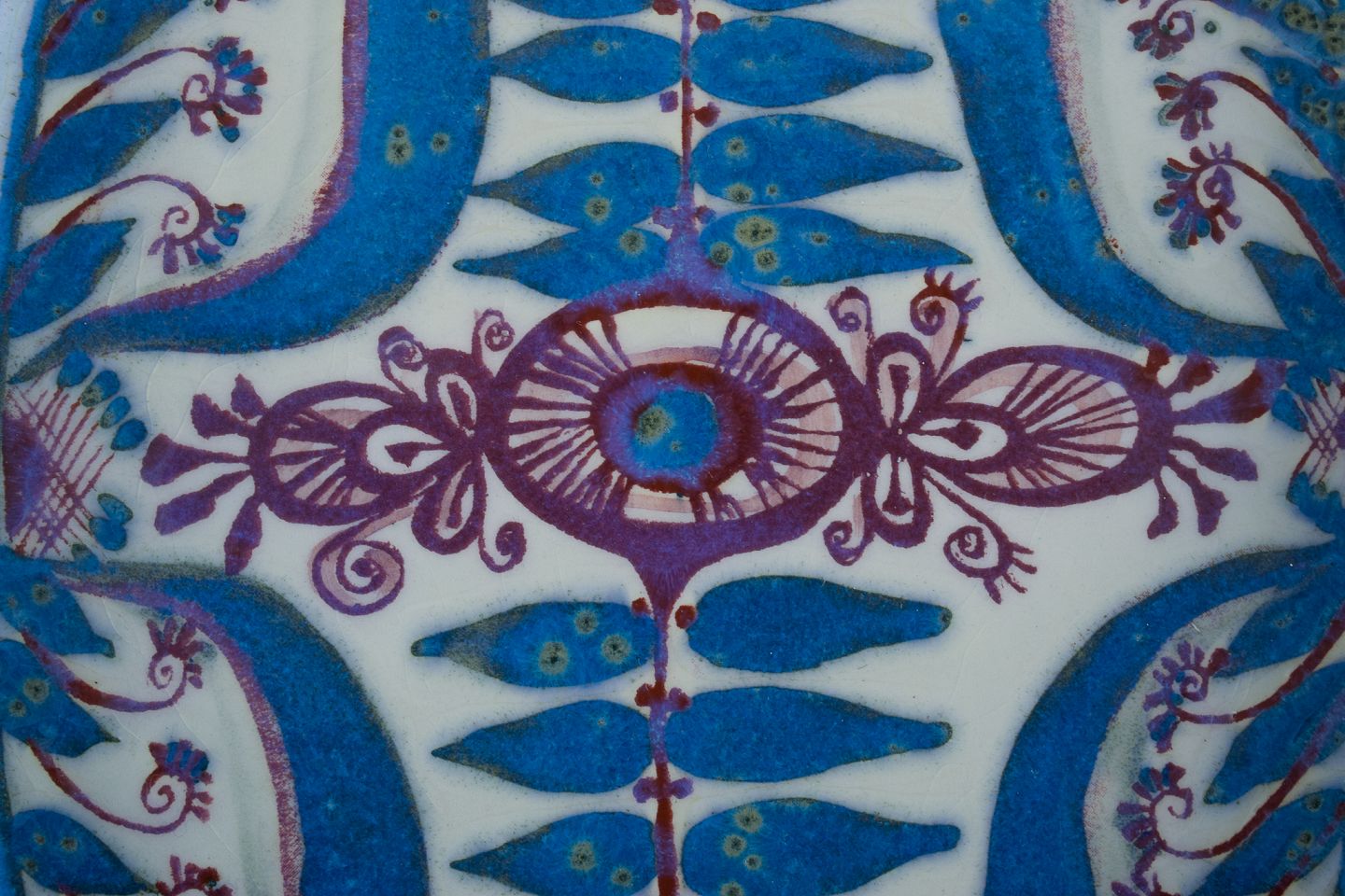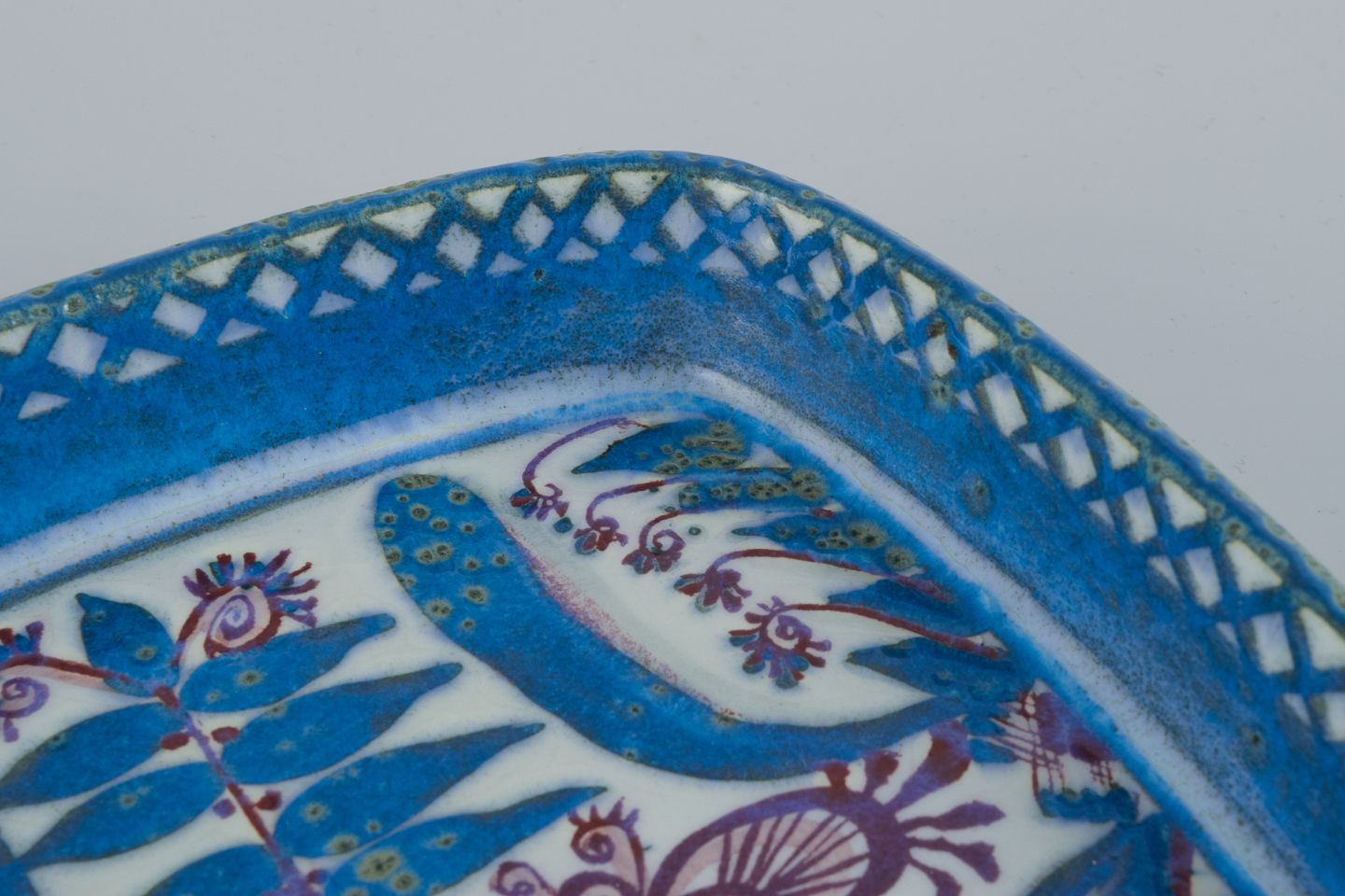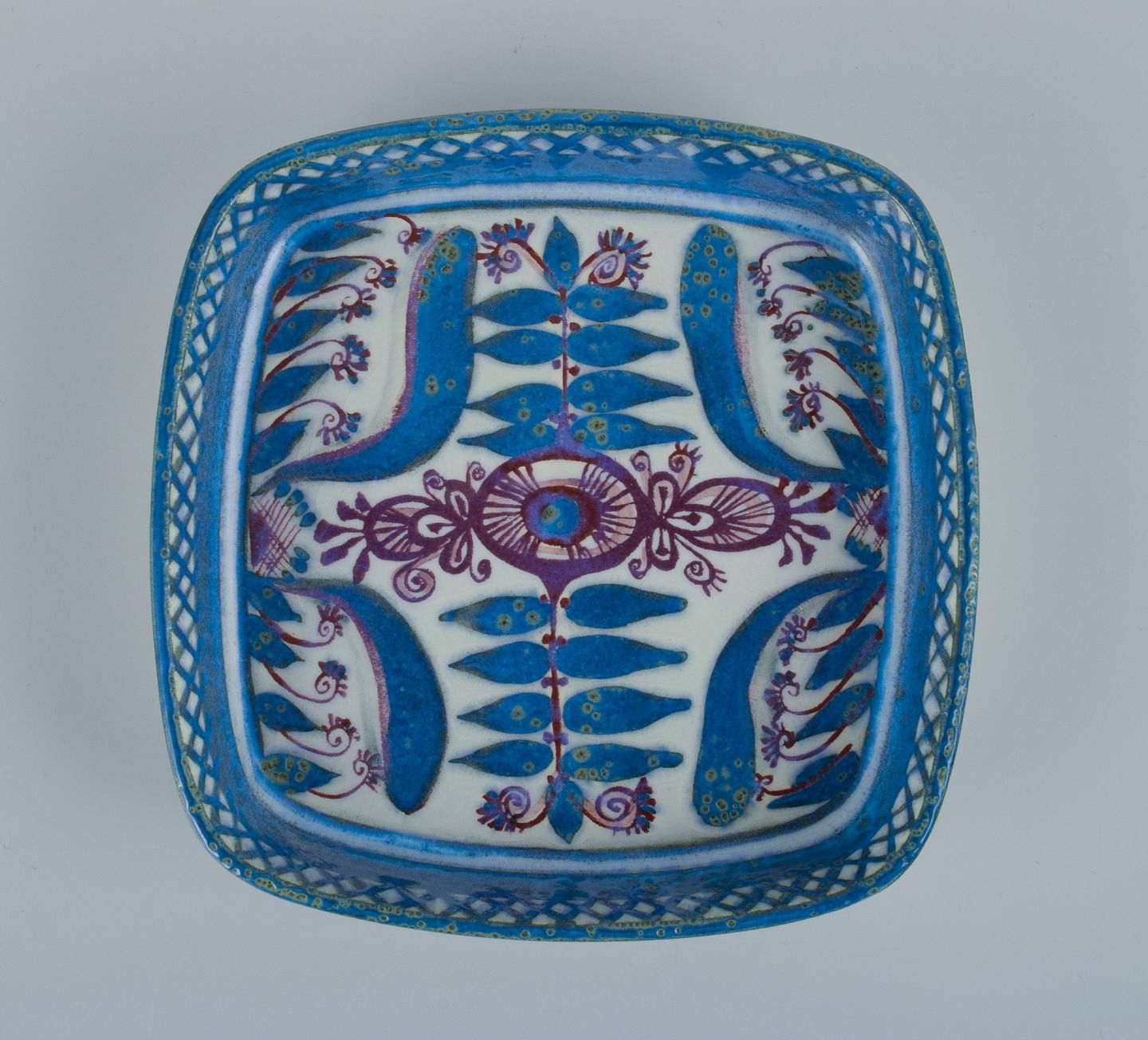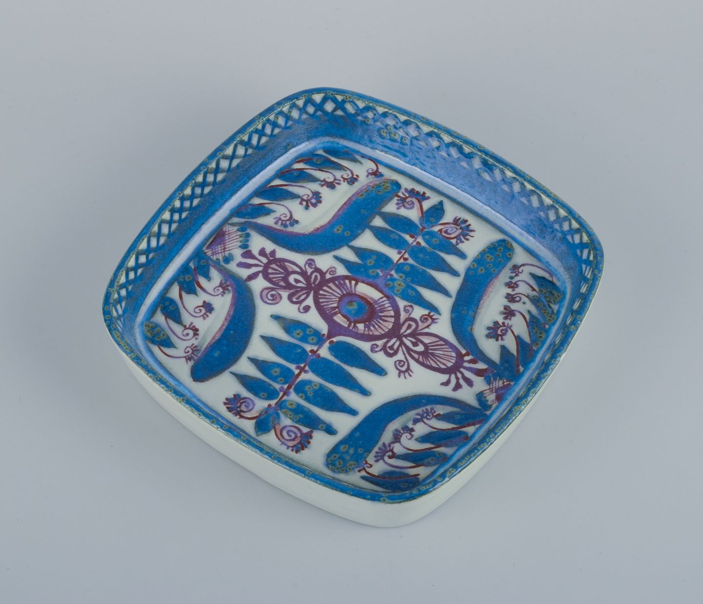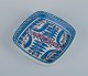Marianne Johanson for Royal Copenhagen, Aluminia, firkantet fad i fajance hånddekoreret med blomstermotiver.