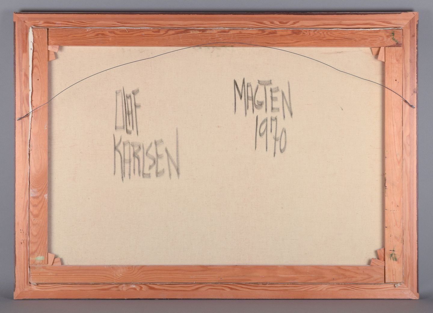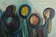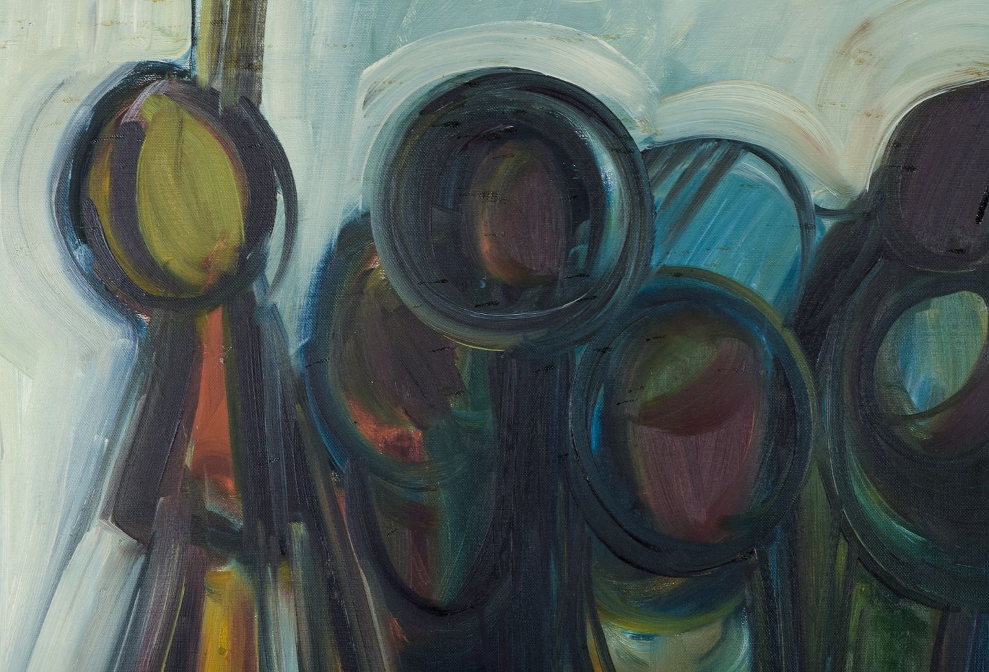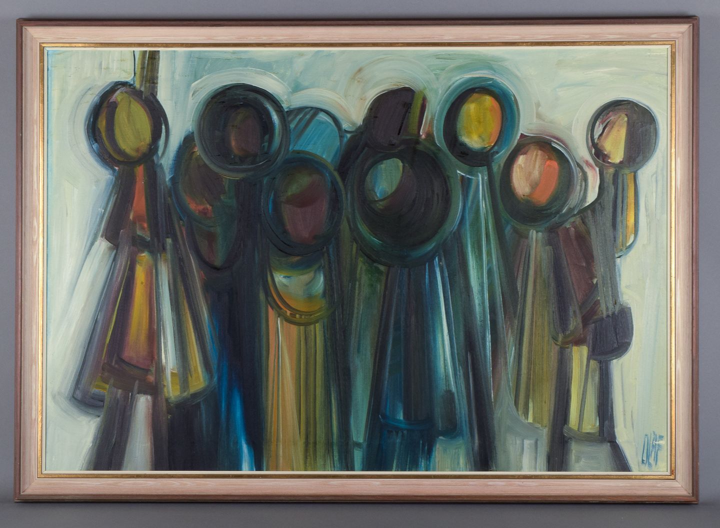 Olaf Karlsen, dansk kunstner. Olie på lærred. Abstrakt komposition med figurer.