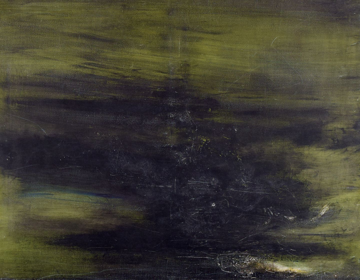 Maurice Rey (1930), spansk/fransk kunstner, olie på lærred. Abstrakt komposition. Stilrent maleri i grønne og sorte toner.