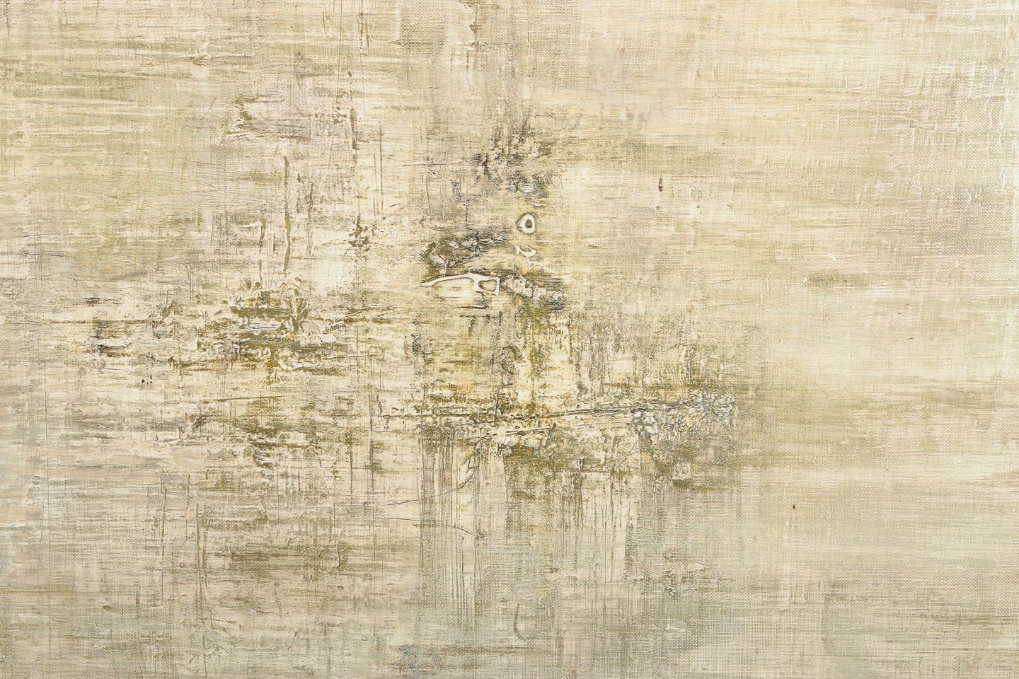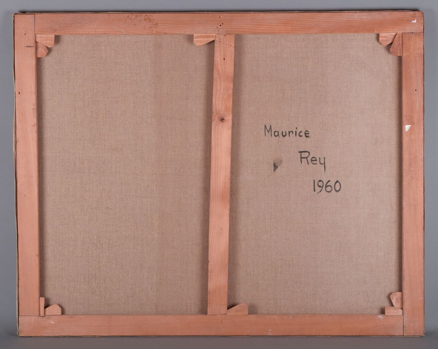 Maurice Rey (1930), fransk kunstner, olie på lærred. Abstrakt komposition. Stilrent maleri i hvide, grønne og grå toner. 1960. Signeret på bagside. I flot stand. Mål: B 92,0 cm. x H 73,0 cm.