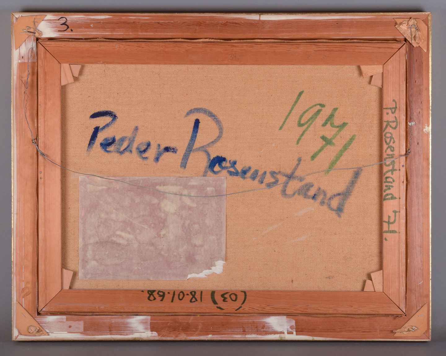 Peder Rosenstand, dansk maler. Olie på lærred. Modernistisk stilleben med kande. Signeret og dateret 1971. Perfekt stand. Lysmål: B 71,5 cm. x H 53,5 cm. Totalmål: B 84,0 cm. x H 66,0 cm.