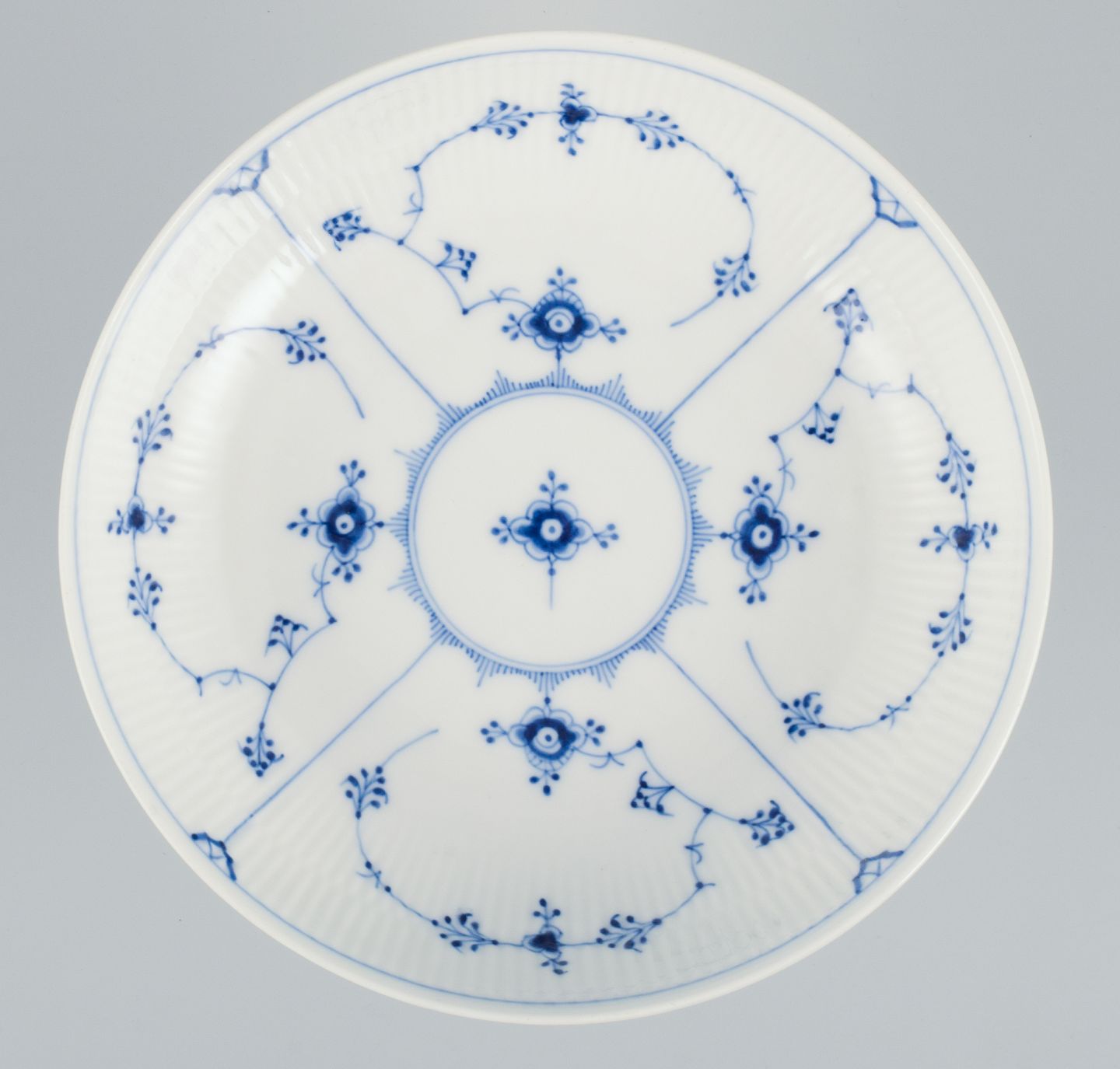 Royal Copenhagen Musselmalet Riflet, opsats. Modelnummer 1/22-23. Ca. 1930. Første sortering. Perfekt stand. Stemplet. Mål: H 14,3 cm x D 20,7 cm.