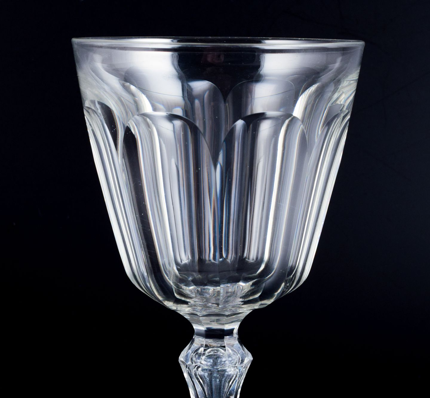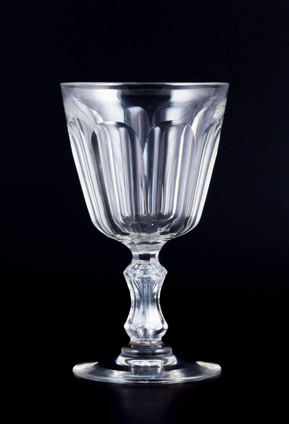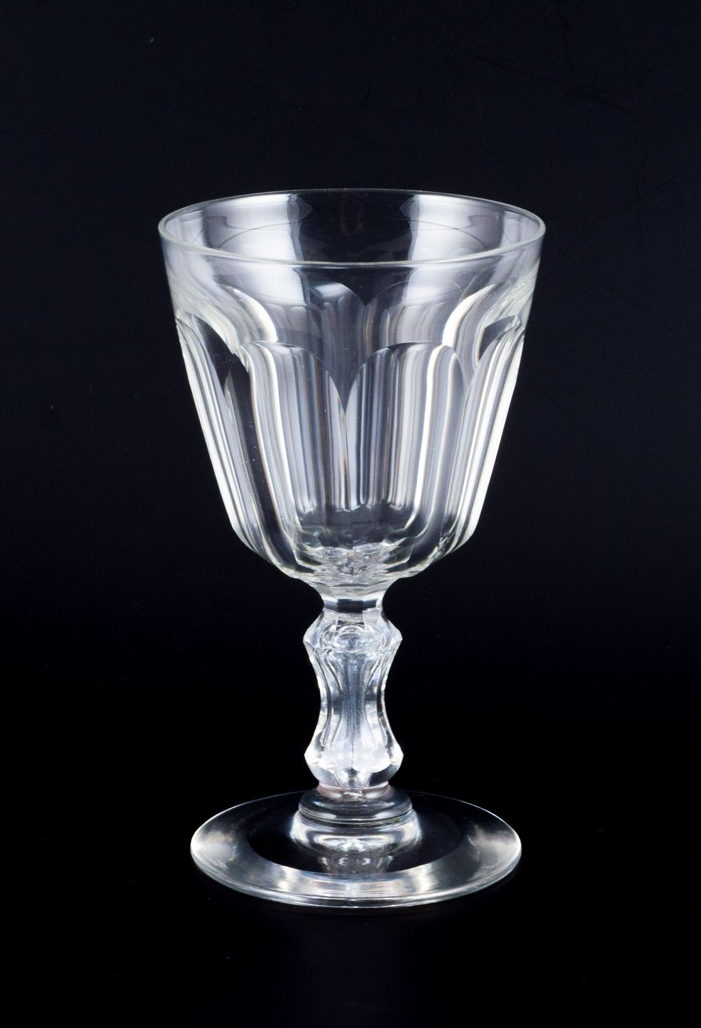 Val St. Lambert, Belgien, et sæt på seks "Lalaing" rødvinssglas i klart facetslebet krystalglas.