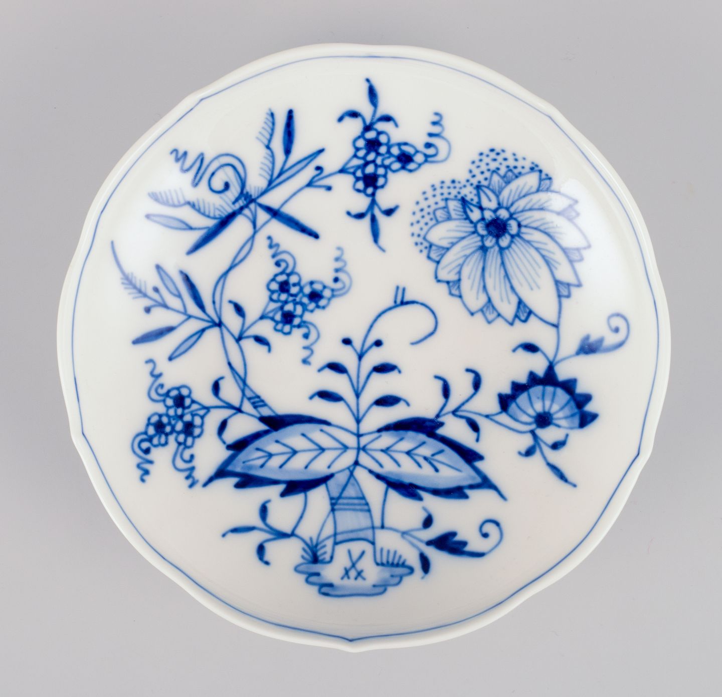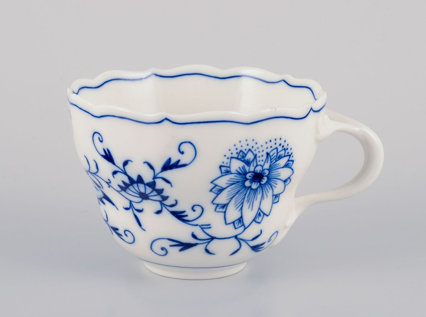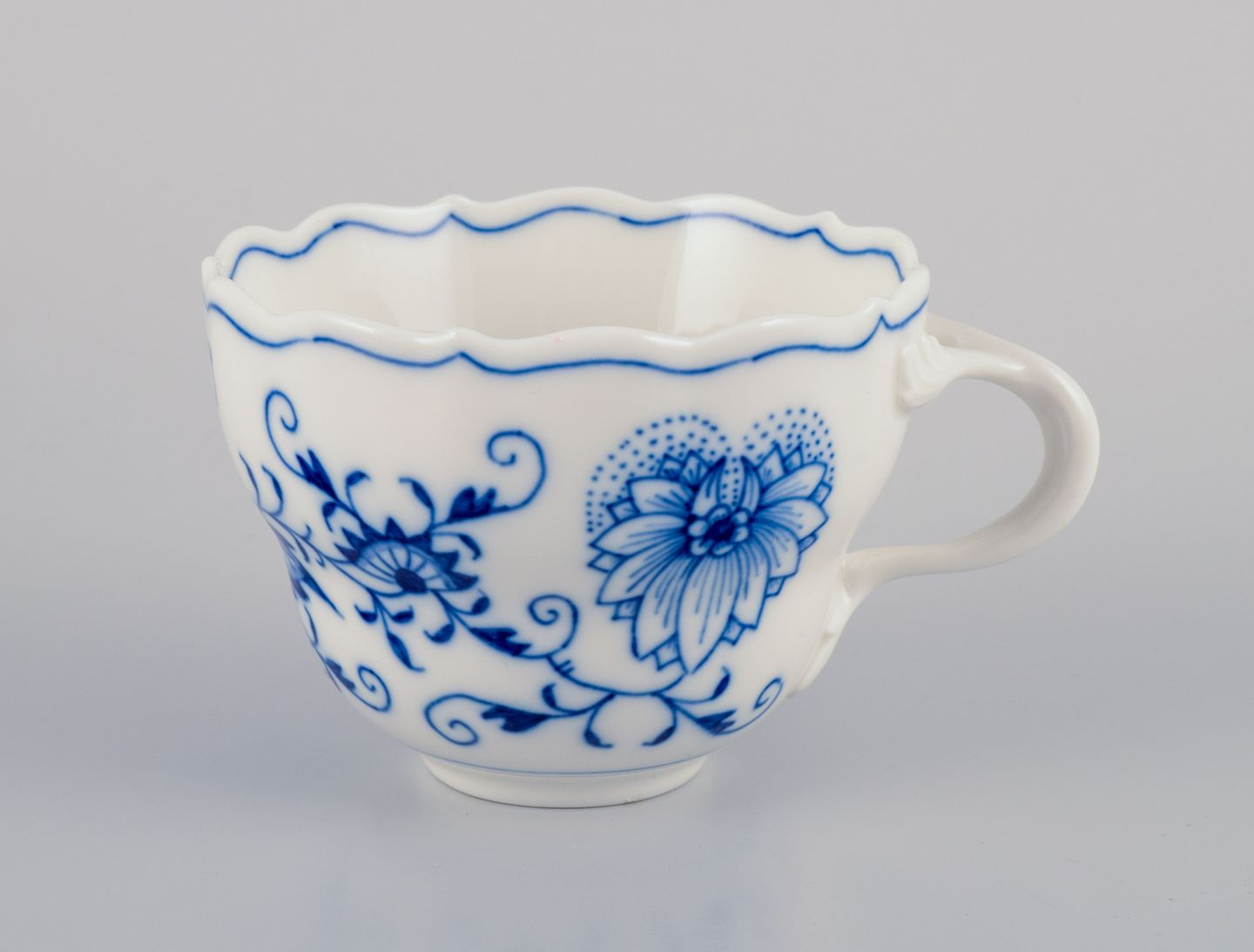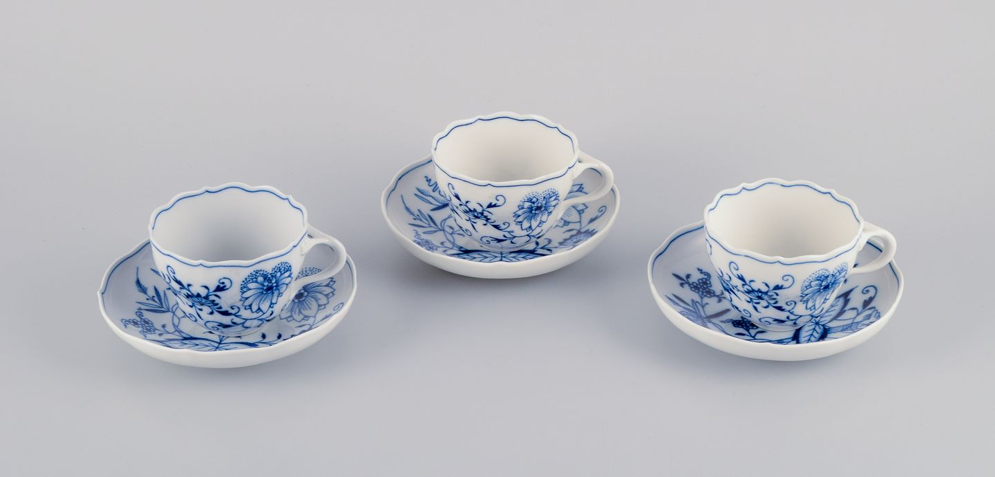 Meissen, Germany, three onion pattern coffee cups with saucers.