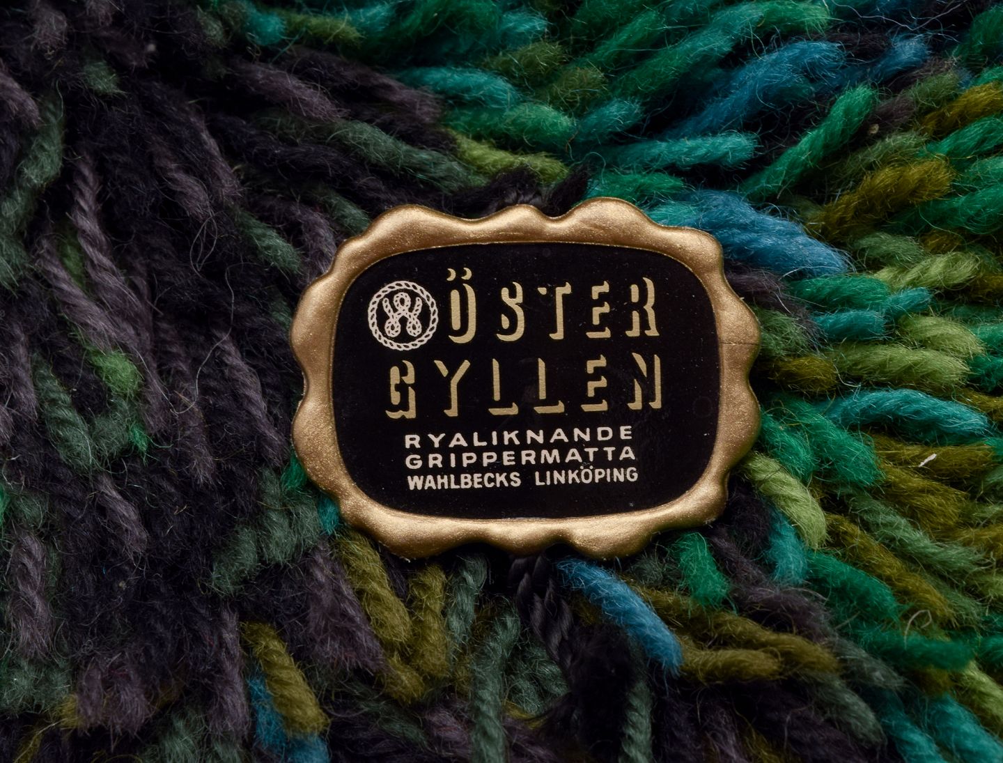 Marianne Richter, Sverige, ”Östergyllen” ryatæppe i grønne nuancer. Modernistisk design. 1970’erne. I flot stand. Med markat. Mål: 117 cm. x 74 cm.