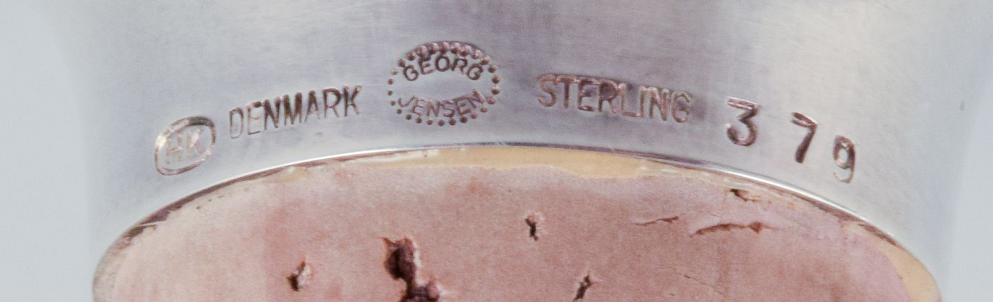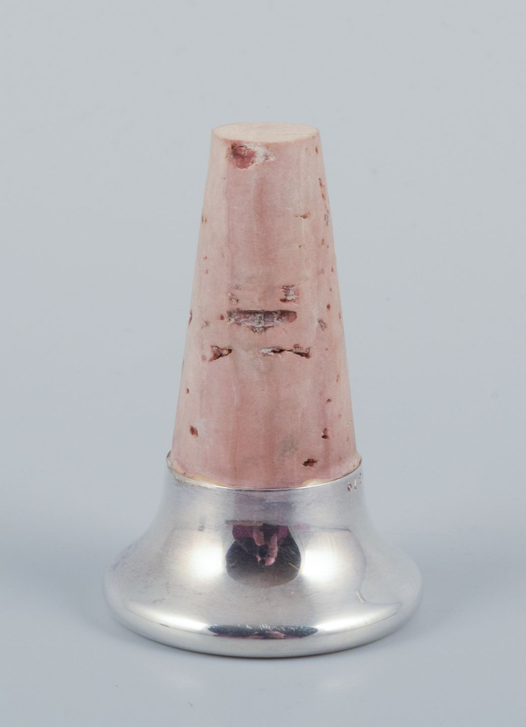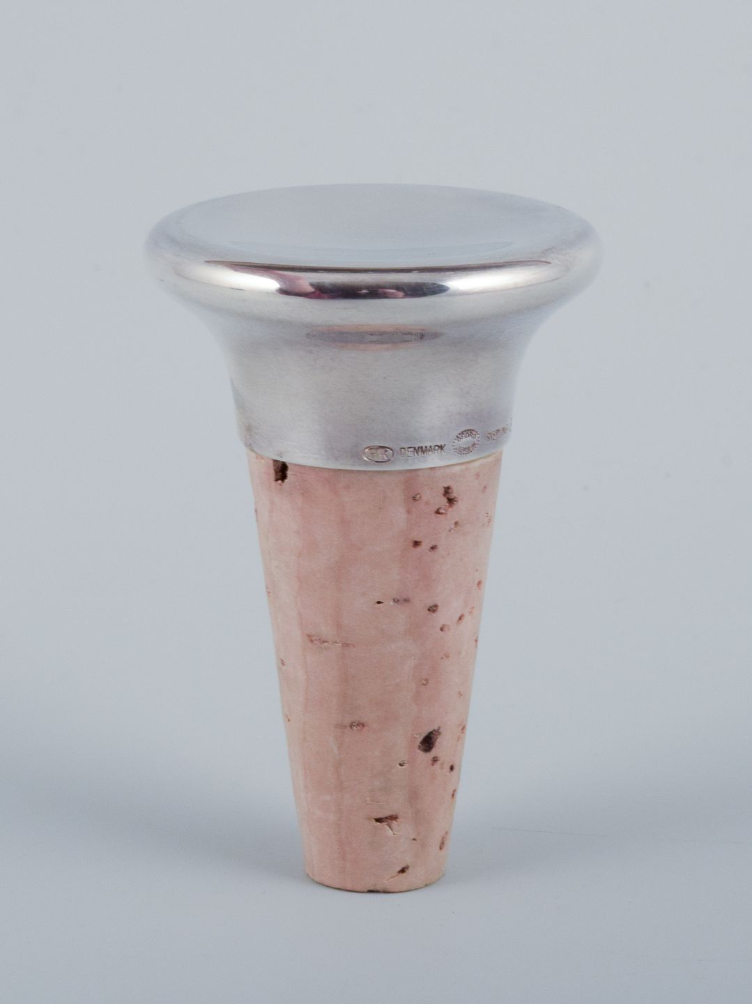 Henning Koppel for Georg Jensen, sjælden modernistisk vinprop i sterlingsølv og kork.