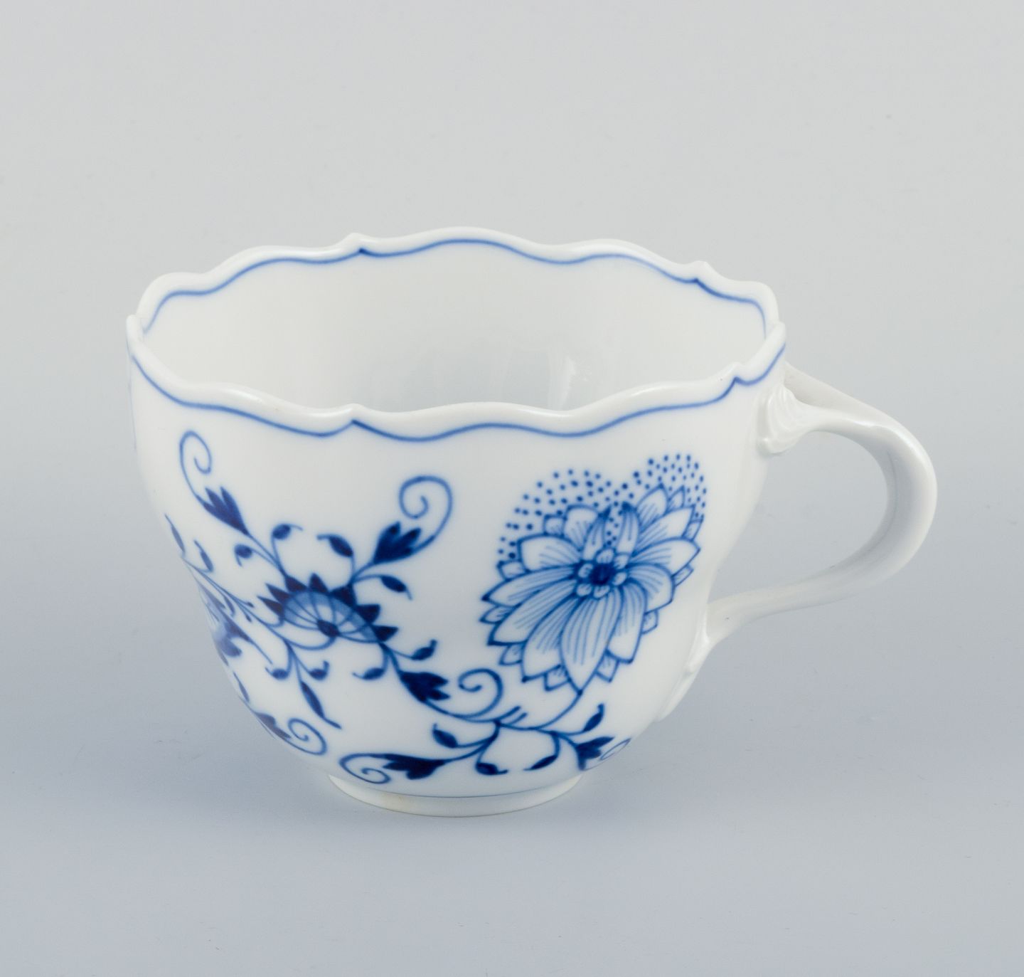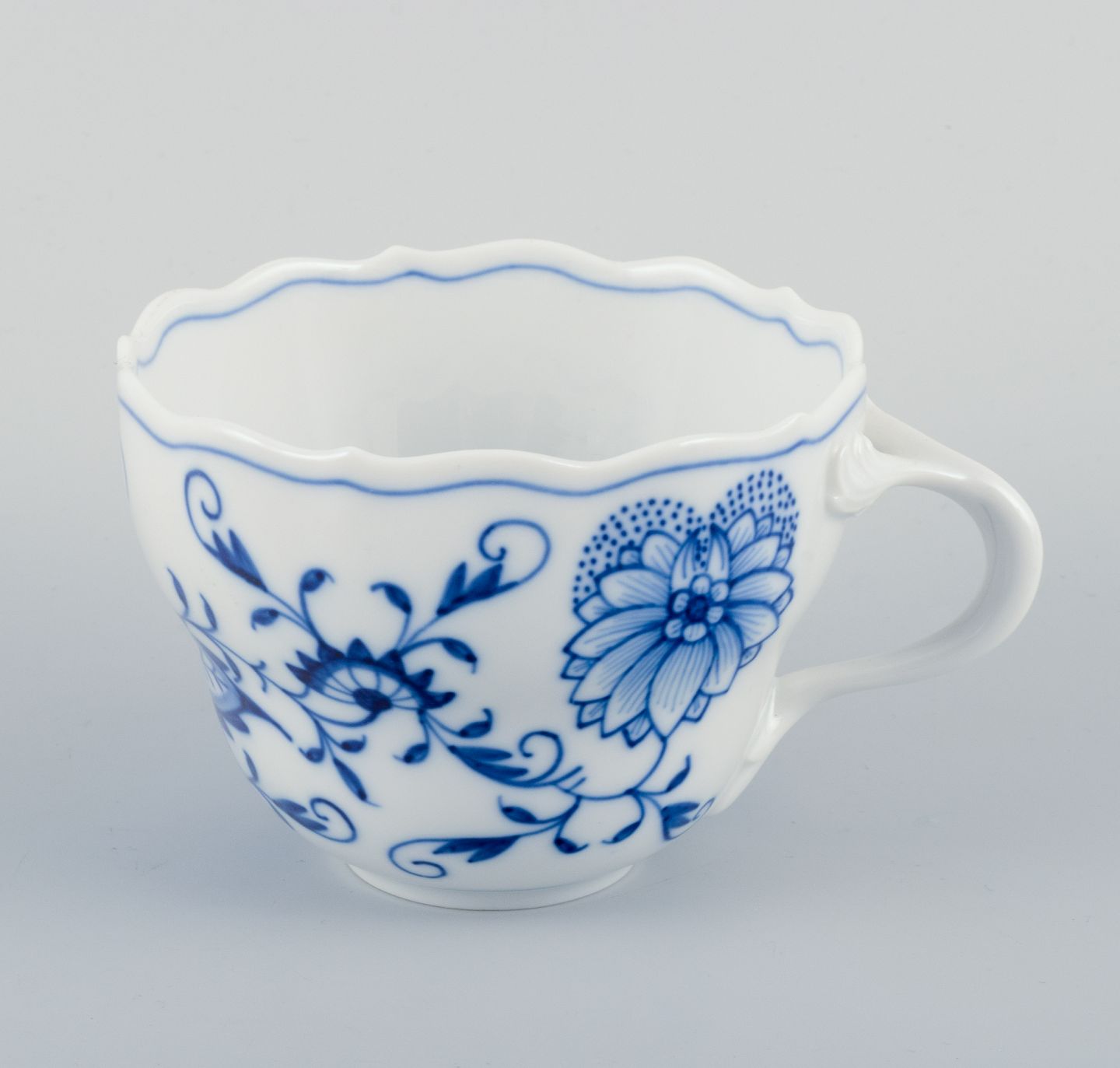 Meissen, Tyskland, fire par løgmønstret kaffekopper med tilhørende underkopper. Håndmalet. Midt 1900-tallet. Stemplet. Første sortering. Perfekt stand Kop: H 6,7 cm. x D 8,9 cm. Underkop: 14,0 cm.