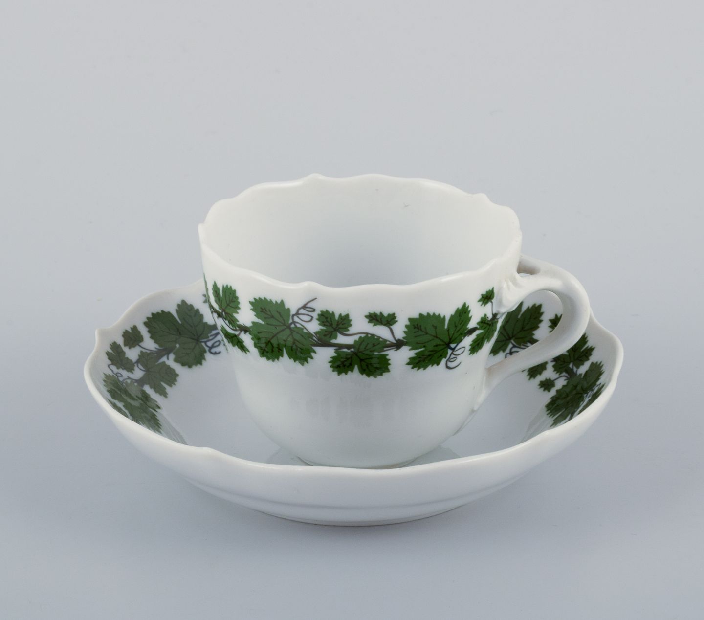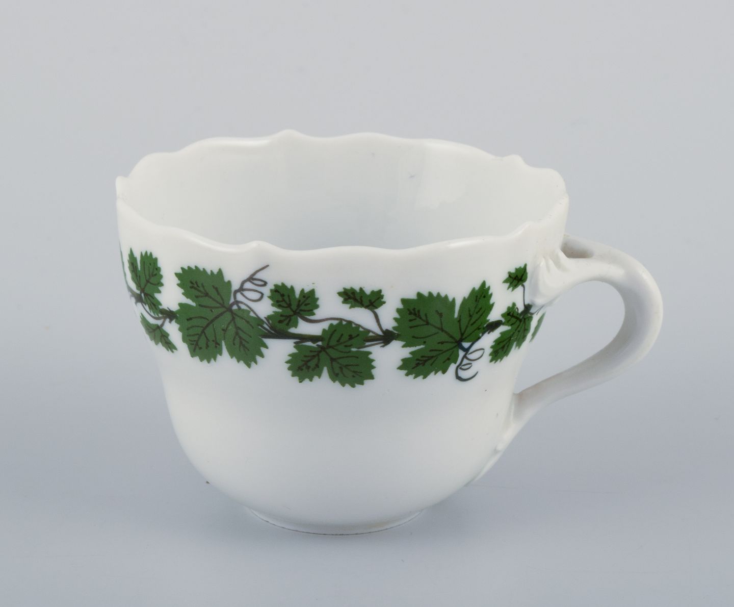 Meissen, Tyskland, Green Ivy Vine, et sæt på fem mokkakopper med tilhørende underkopper. Håndmalet.