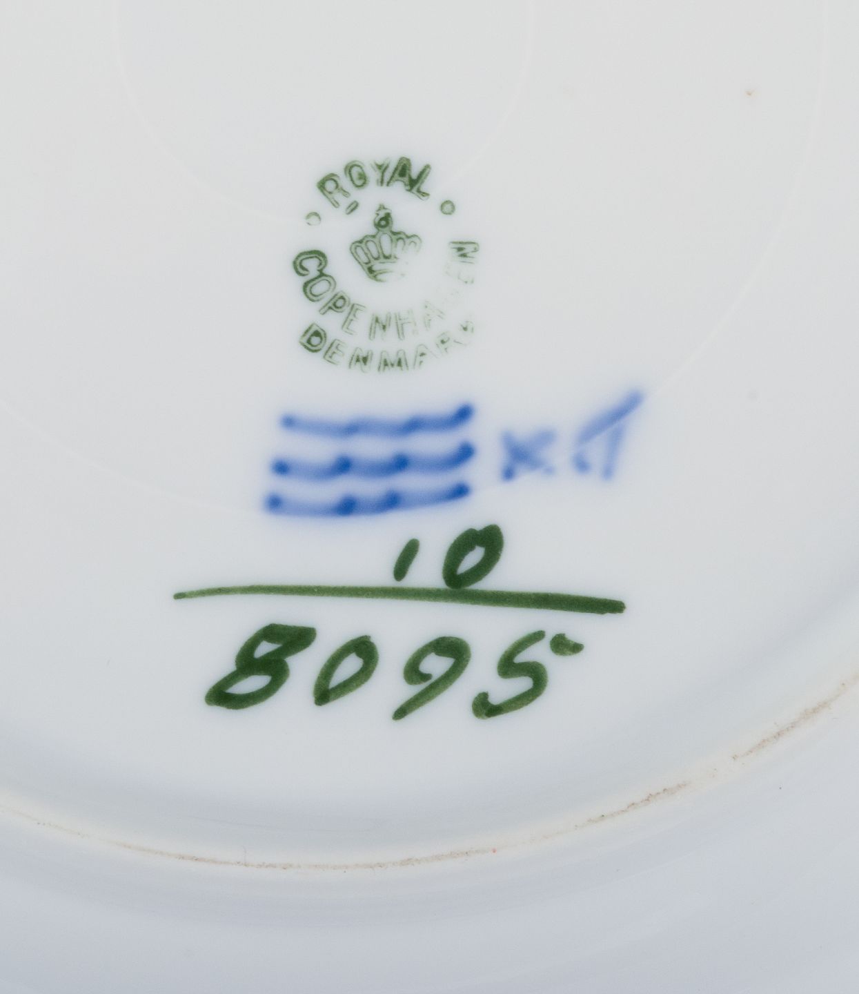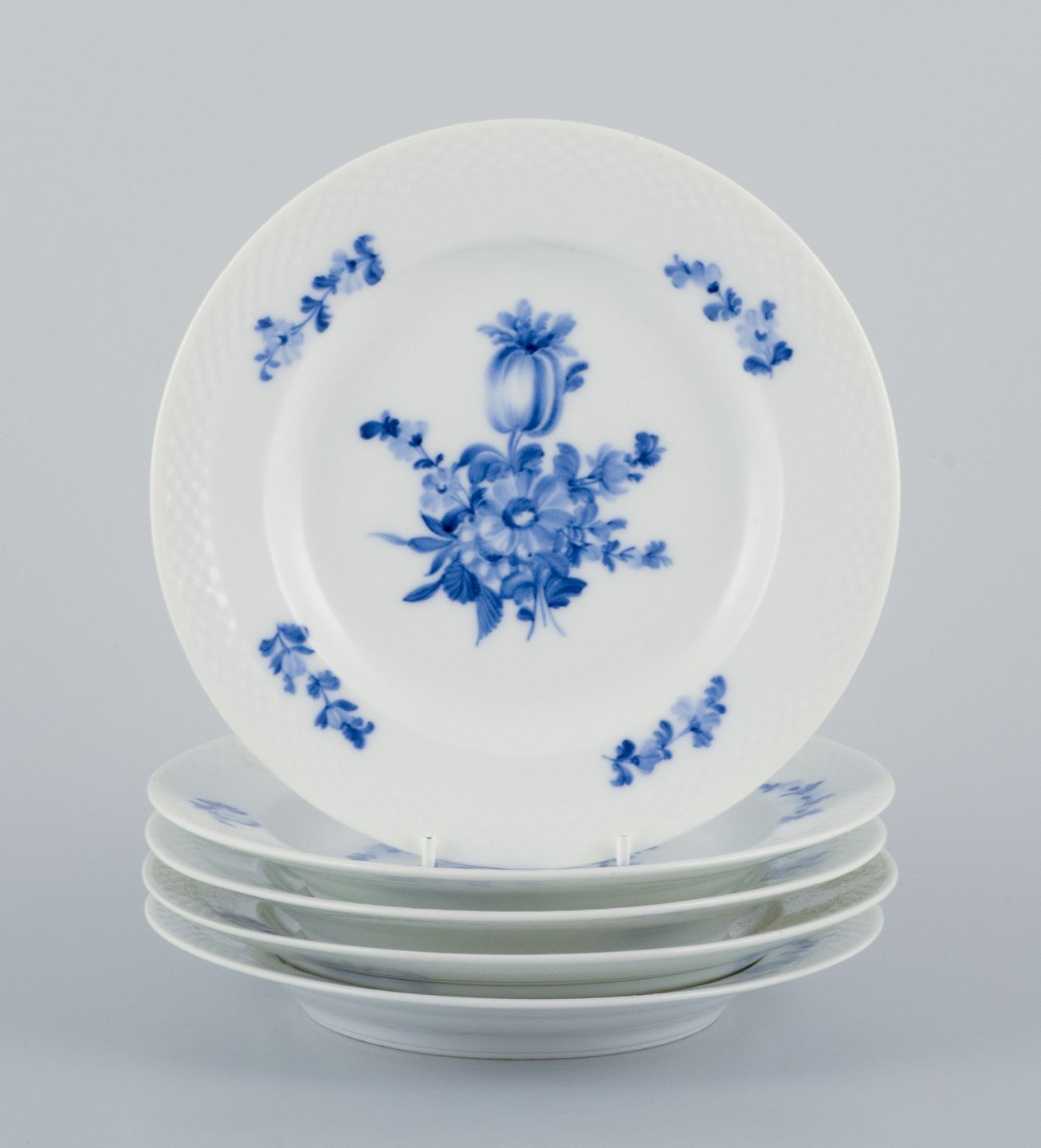 Royal Copenhagen Blå Blomst Flettet, et sæt på fem små frokosttallerkner. Model: 10/8095. Ca. 1930'erne. Stemplet. Første sortering. Perfekt stand. Mål: D 20,4 cm.