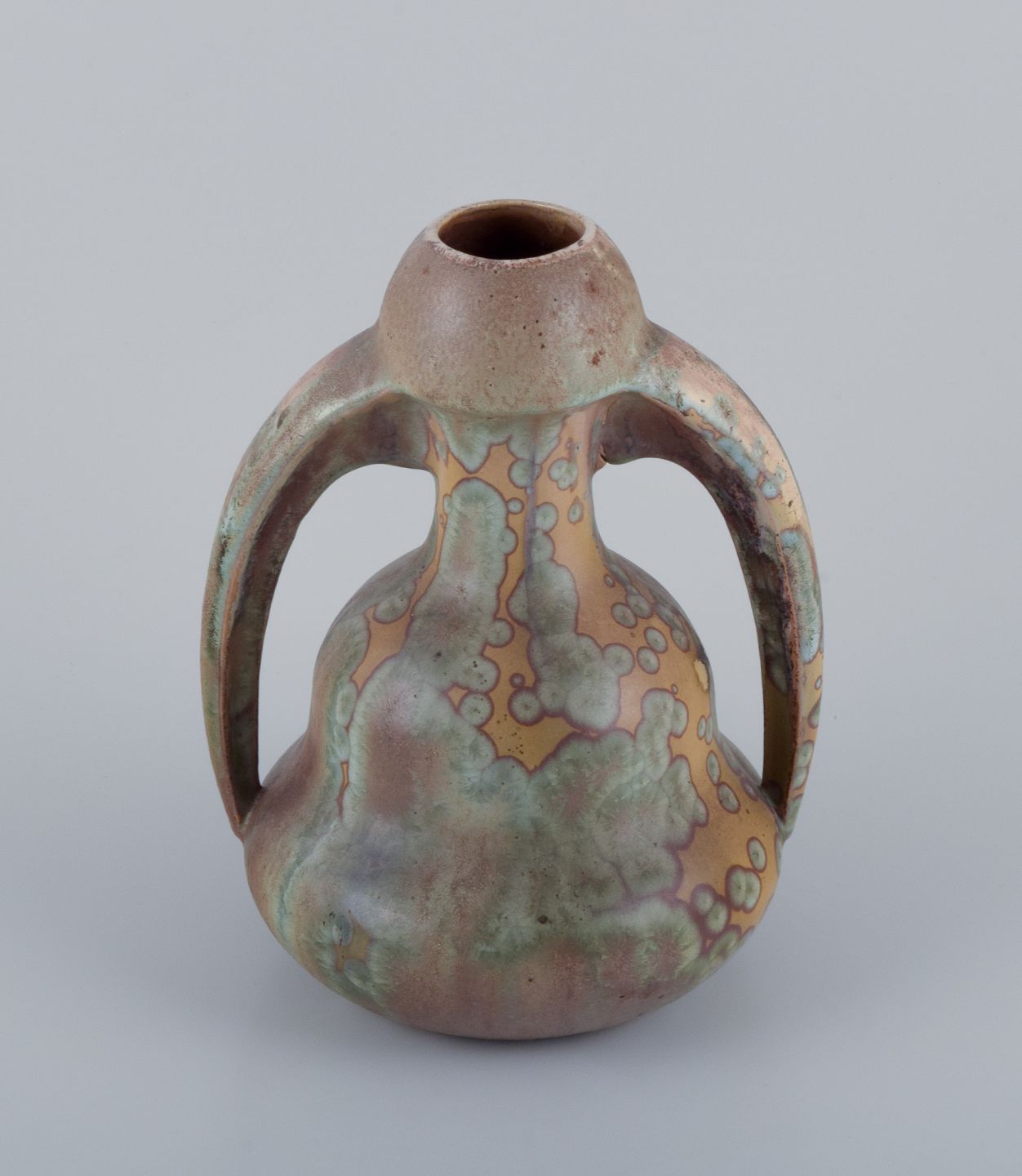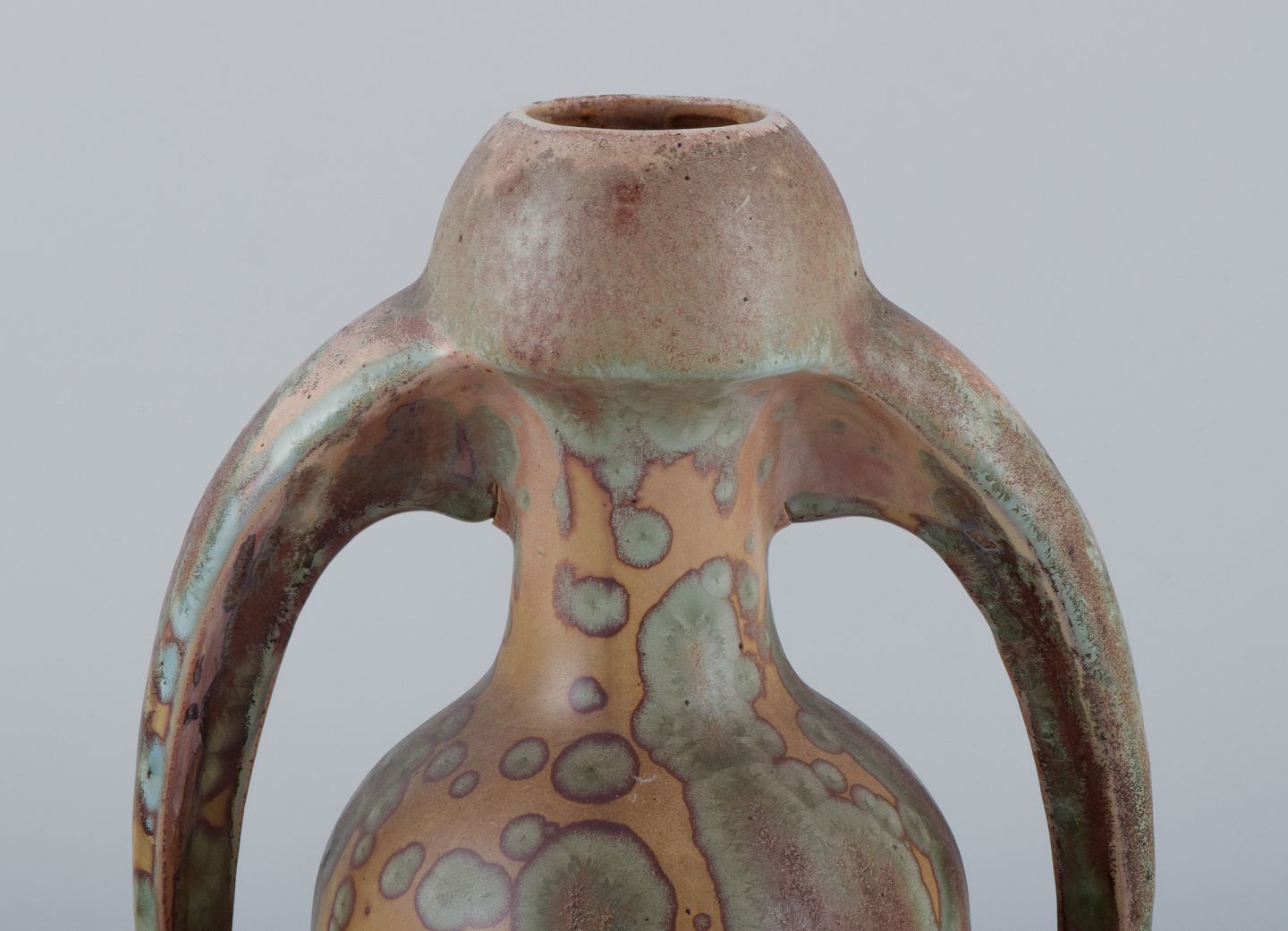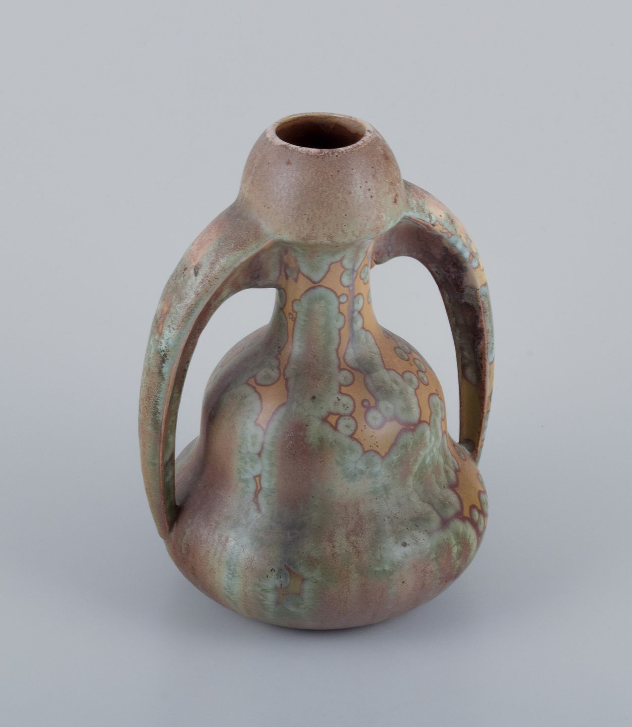 Desvres Fourmaintraux Delassus, Frankrig. Keramikvase med hanke i Krystalglasur. Art Nouveau.