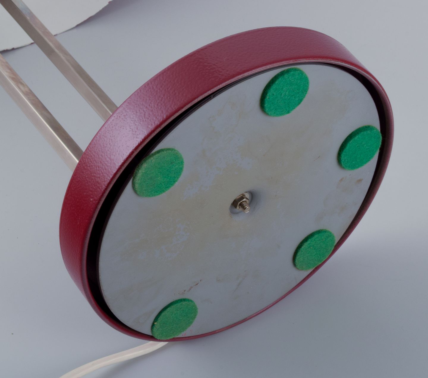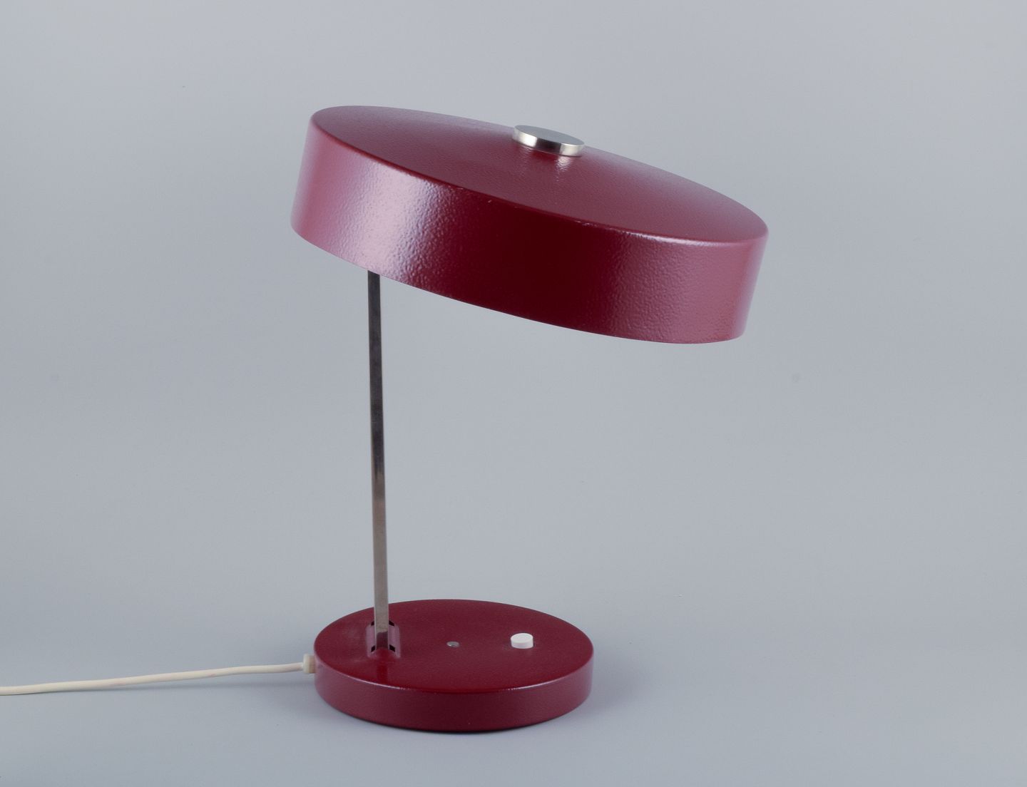 Kaiser Leuchten. Skrivebordslampe i bordeaux lak. 1960’erne. I flot stand. Mål: Højde i vandret position: 42,0 cm. Skærm: D 32,0 cm. Ledning: 140 cm.
