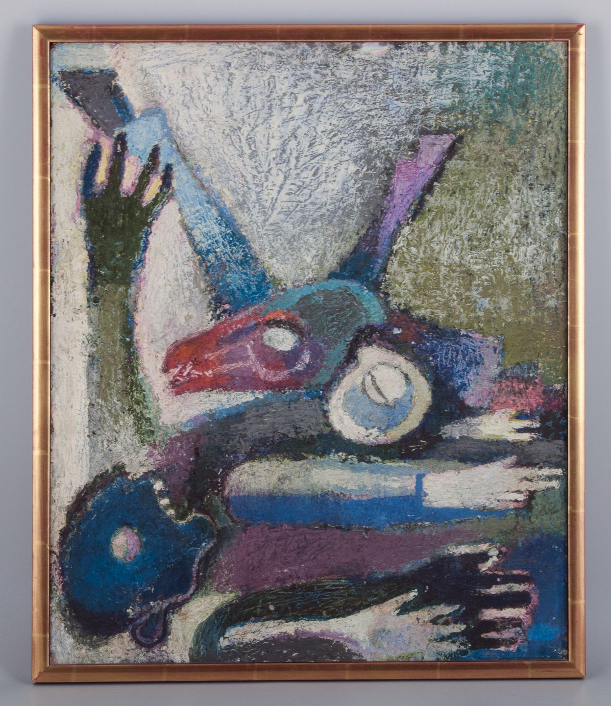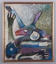 Maj Hemberg, svensk kunstner, olie på plade. Abstrakt komposition. Koloristisk palette. Malet med pastose penselstrøg.