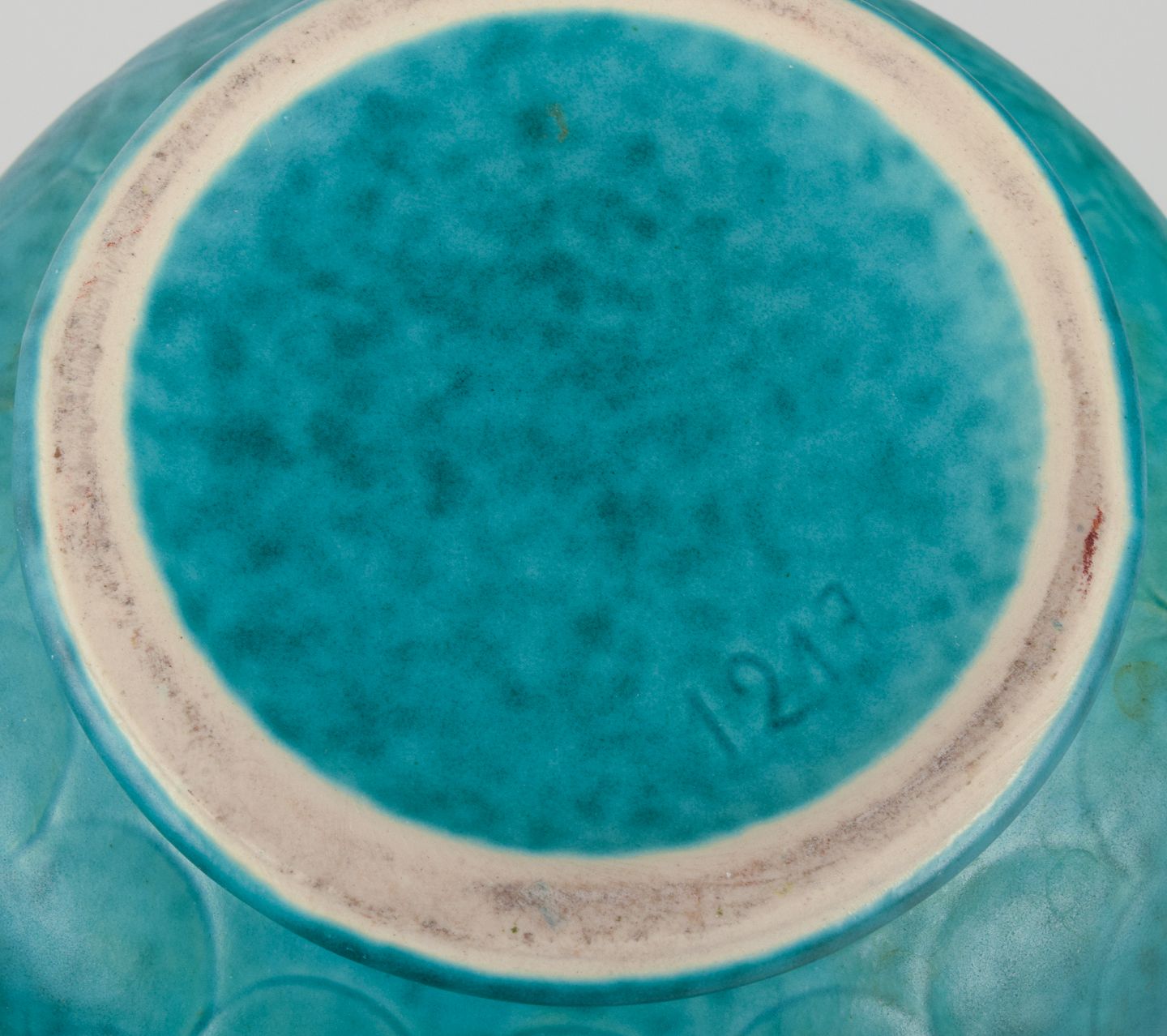 Wilhelm Kåge (1889-1960) for Gustavsberg, Sverige, stor Art Deco kande i keramik med klassisk grøn glasur. Fra Argenta serien.