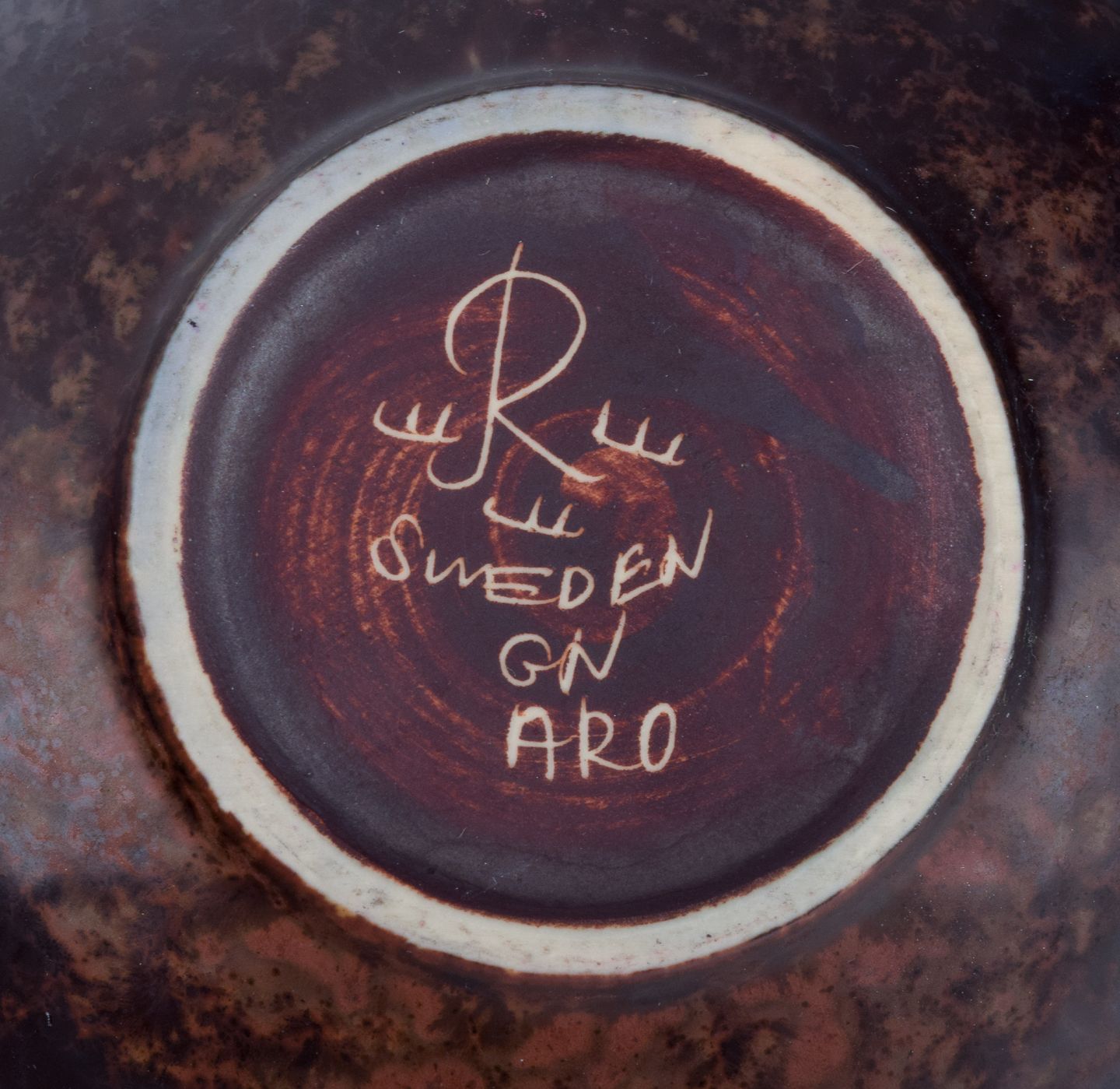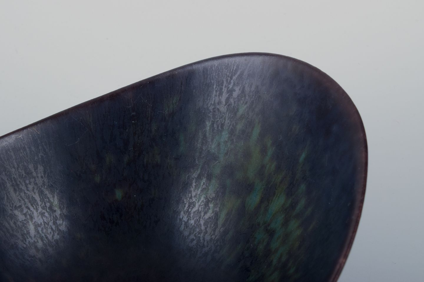 Gunnar Nylund (1904-1997) for Rörstrand, keramikskål med glasur i blålige og brune toner.