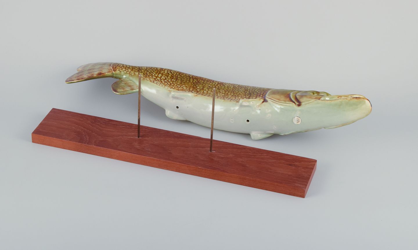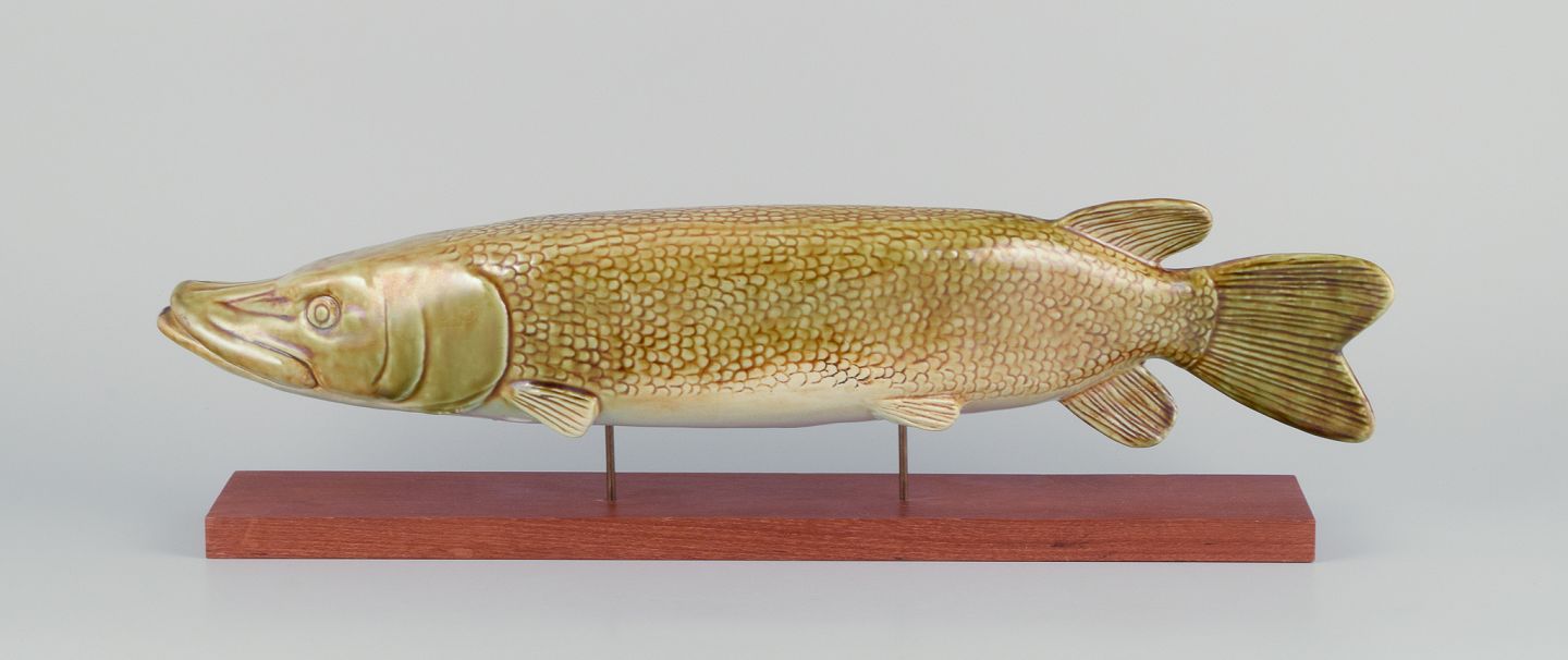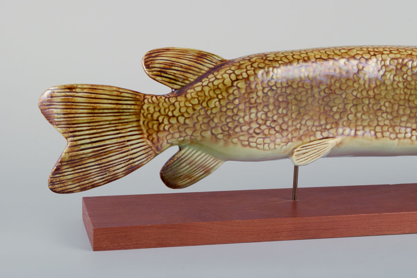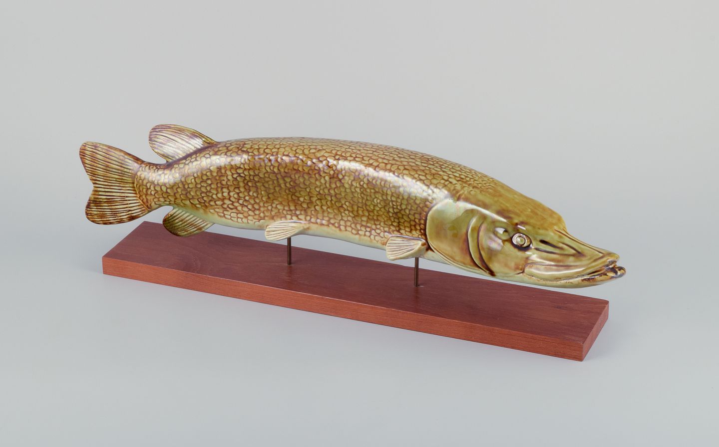 Sven Wejsfelt (1930–2009) for Gustavsberg. Stor og imponerende keramikskulptur af gedde.