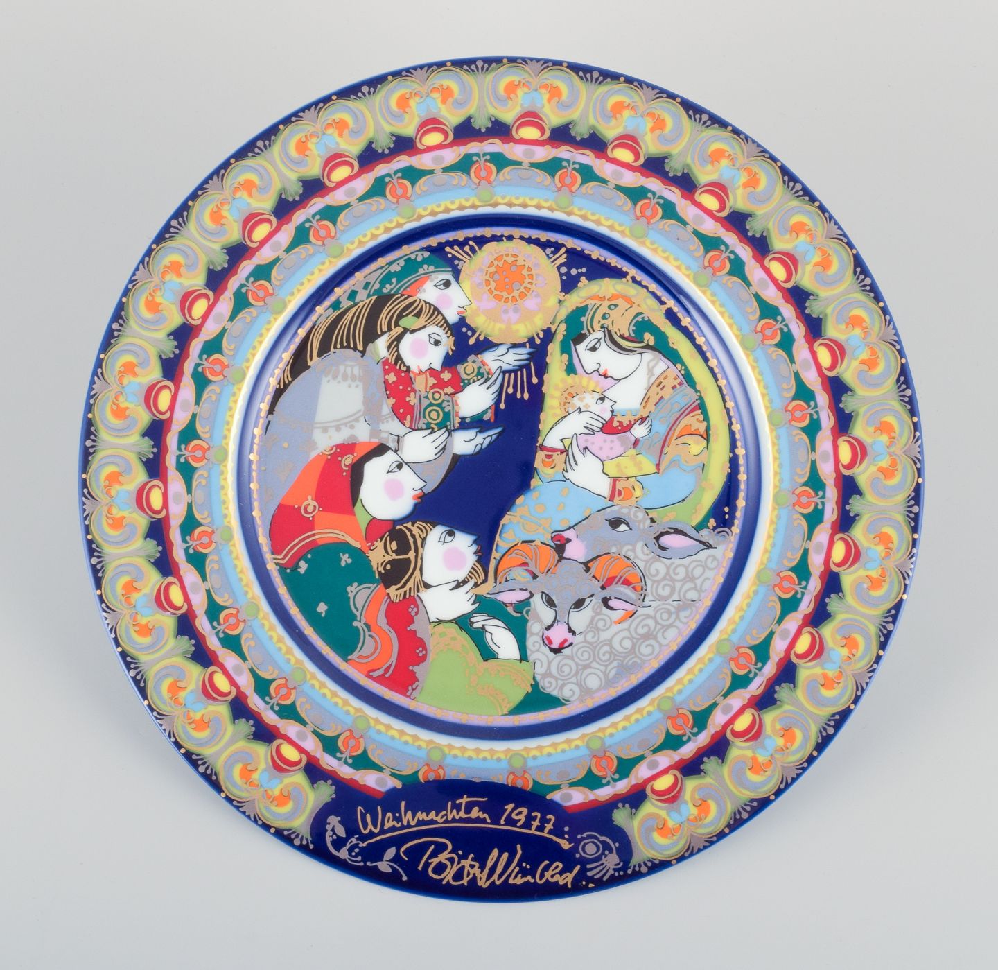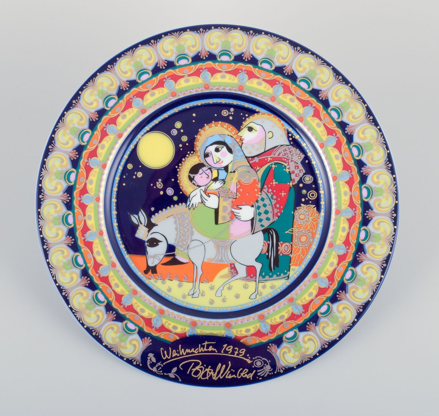 Bjørn Wiinblad for Rosenthal, et sæt på fem håndmalede juletallerkner med bibelske motiver. 1974, 1977, 1978, 1979 og 1982. Stemplet. Perfekt stand. Mål: D 28,5 cm.