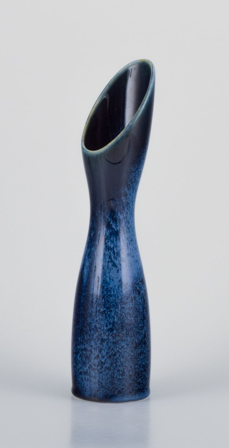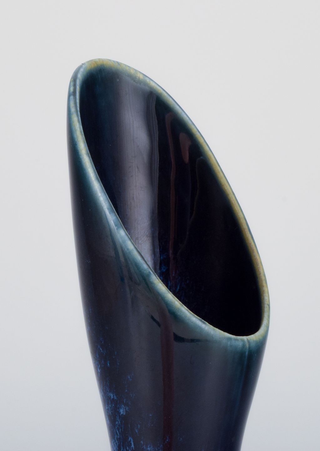 Stig Lindberg for Gustavsberg, Sverige. ”Azur” keramikvase med glasur i azurblå nuancer. Håndmalet.