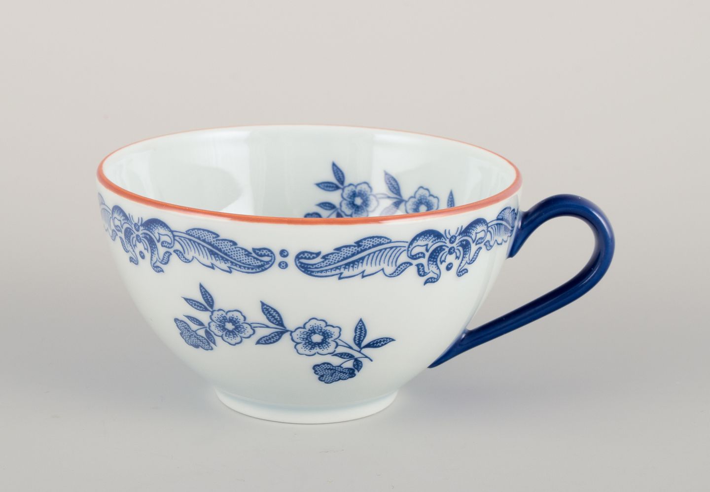 Nils Emil Lundström (1865-1960) for Rörstrand, Sverige, seks ”Ostindia” kaffekopper med tilhørende underkopper i fajance med blomstermotiver.