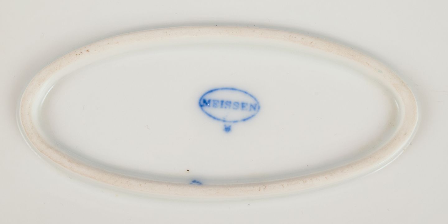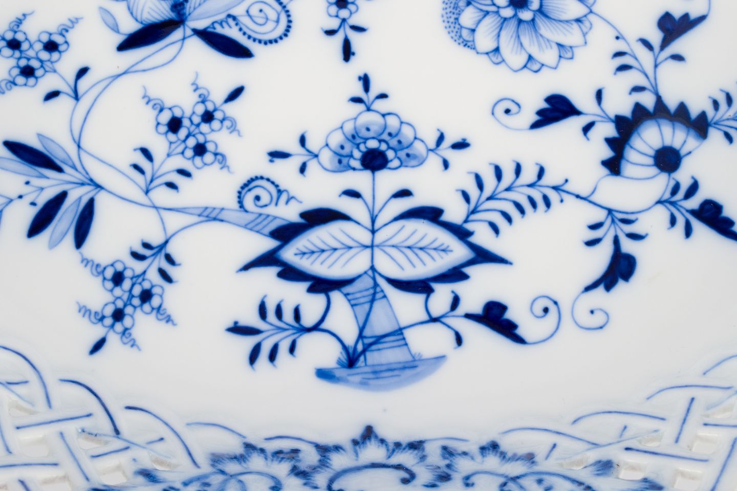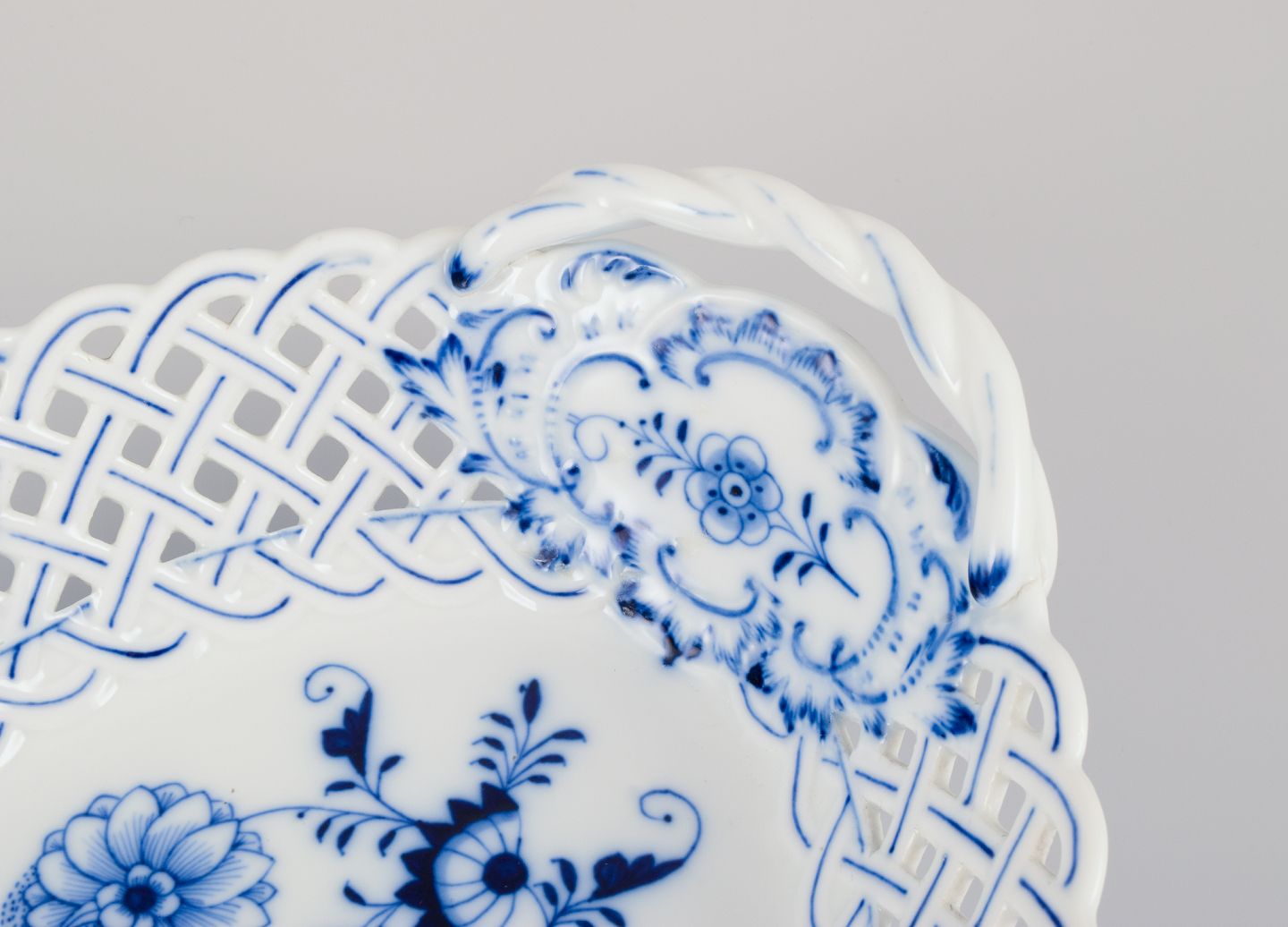 Stadt Meissen, Tyskland. Gennembrudt Løgmønstret skål i håndmalet porcelæn. Ca. 1930’erne. Stemplet. I flot stand med mindre brugspræg. Mål: L 28,5 cm. x B 20,0 cm. x H 5,2 cm.