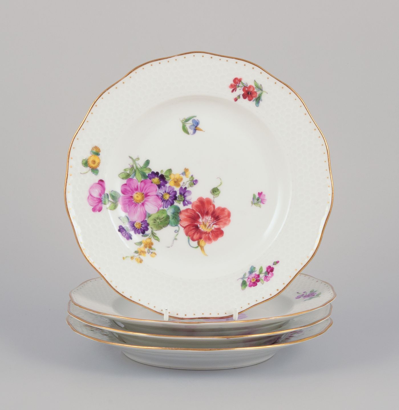 Royal Copenhagen, et sæt på fire Saksisk Blomst porcelænstallerkner.