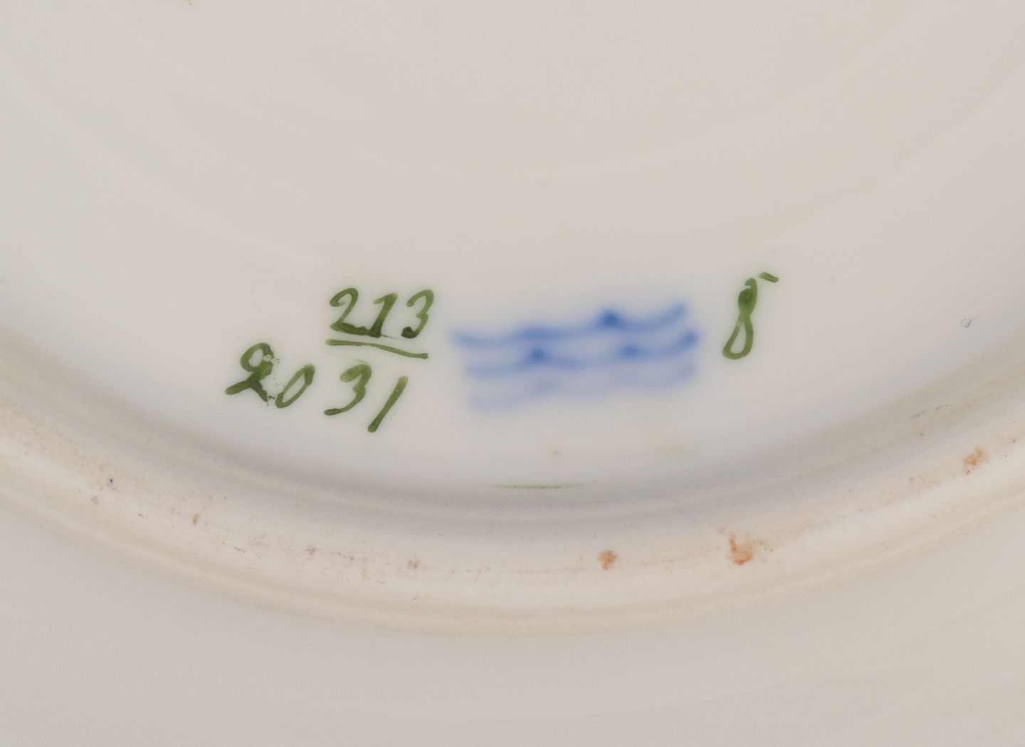 Håndmalet med forskellige polykrome blomstermotiver samt guldkant.