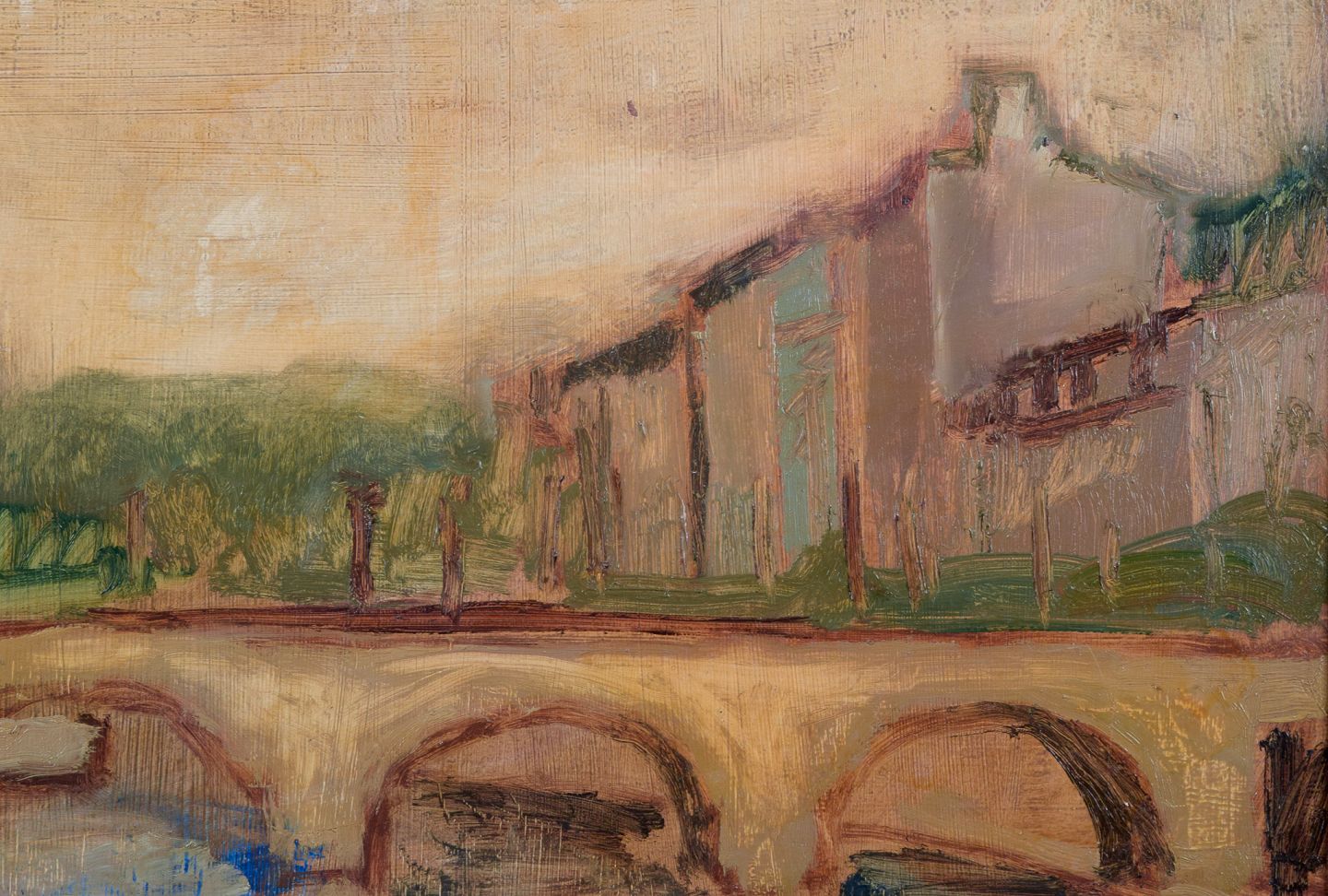 Modernistisk bymotiv fra Paris. Abstrakt stil. Afdæmpet palette.