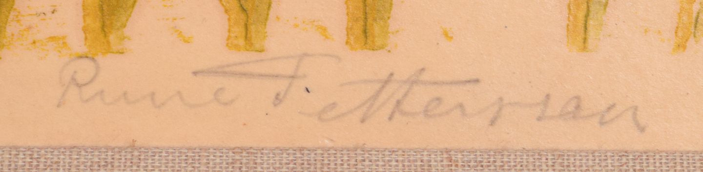 Rune Pettersson (1918-1999), svensk kunstner. Litografi på plade.