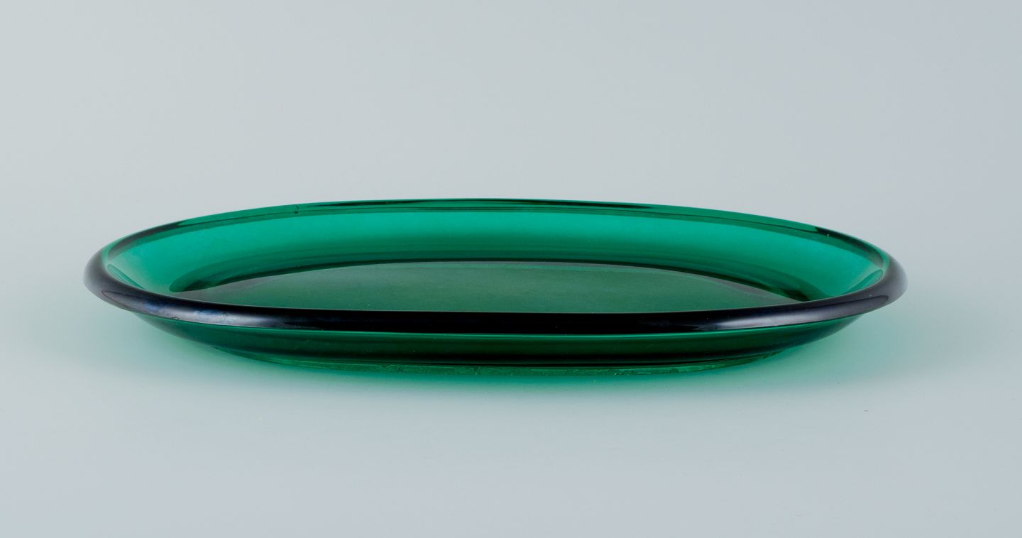 Josef Frank for Reijmyre, Sverige. To hummertallerkner i grønt kunstglas. 1960/70’erne. I flot stand med almindeligt brugspræg. Mål: L 30,5 cm. x B 23,0 cm.