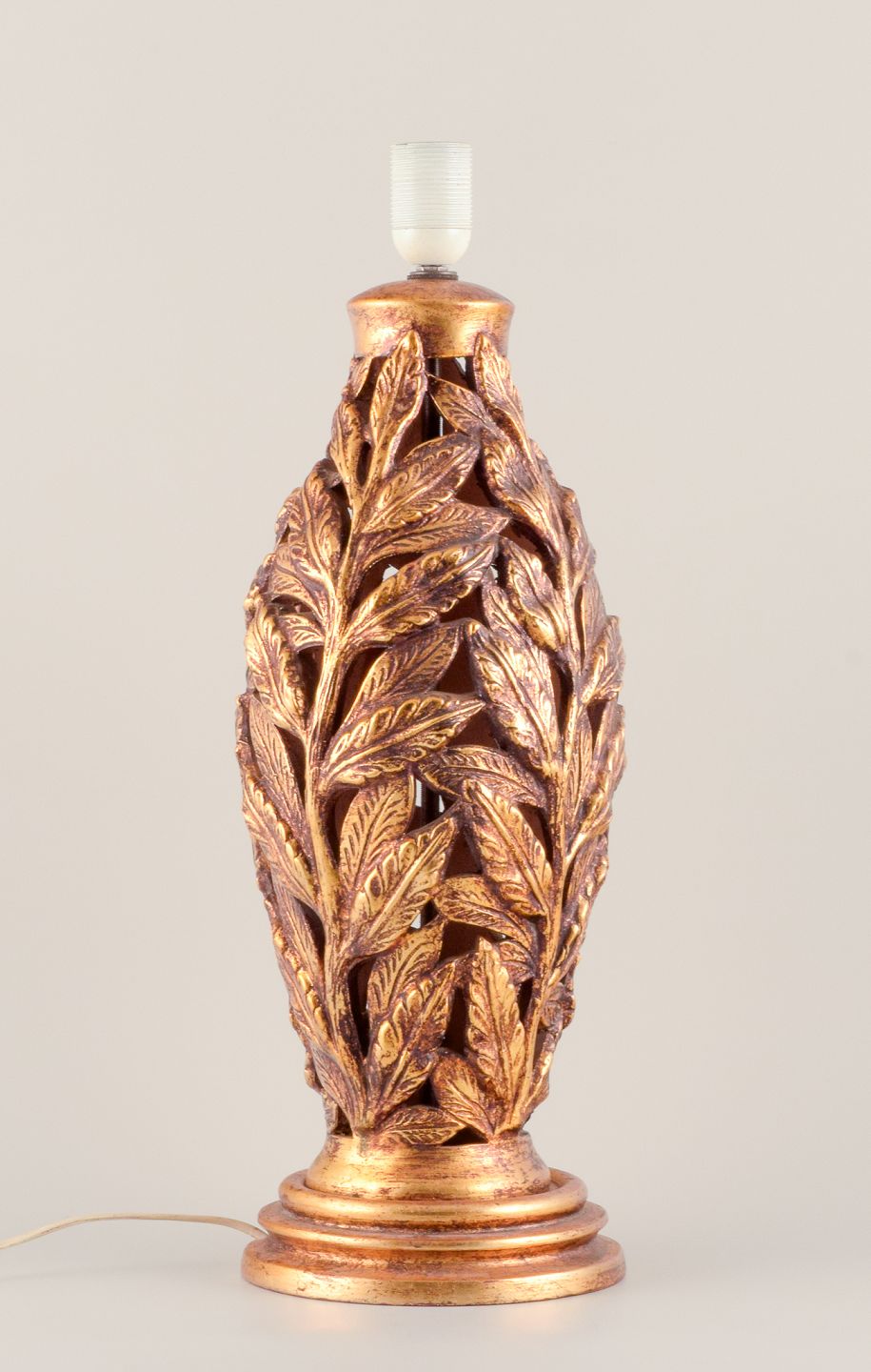 Stor italiensk bordlampe i keramik. Udformet som grene med gulddekoration. 1970/80´erne. Stemplet Italy. I perfekt stand. Mål: H 55,0 cm. x D 18,0 cm.