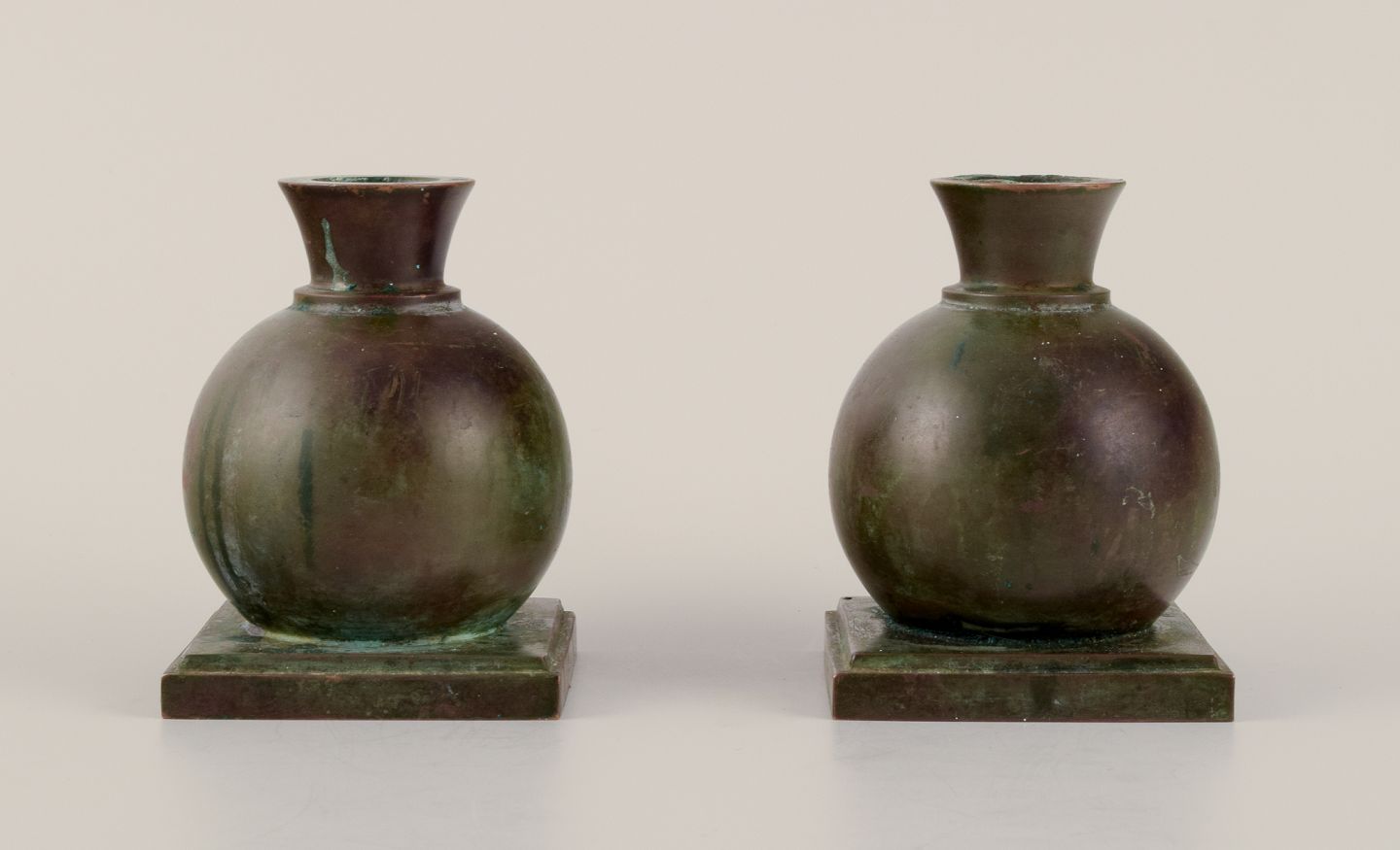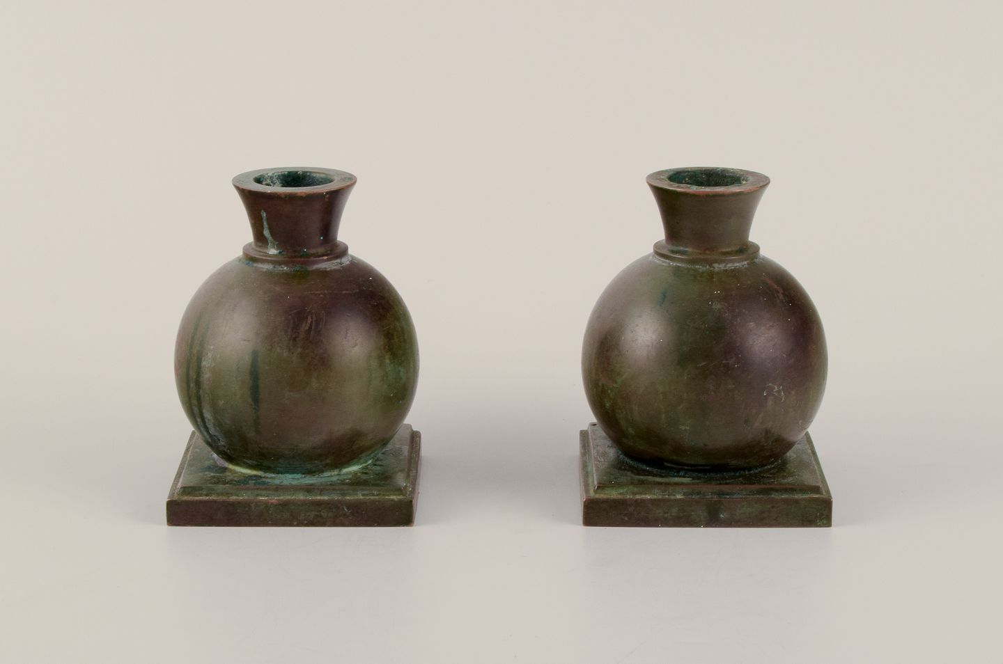 GAB, Sweden. A pair of Art Deco solid bronze candle holders.