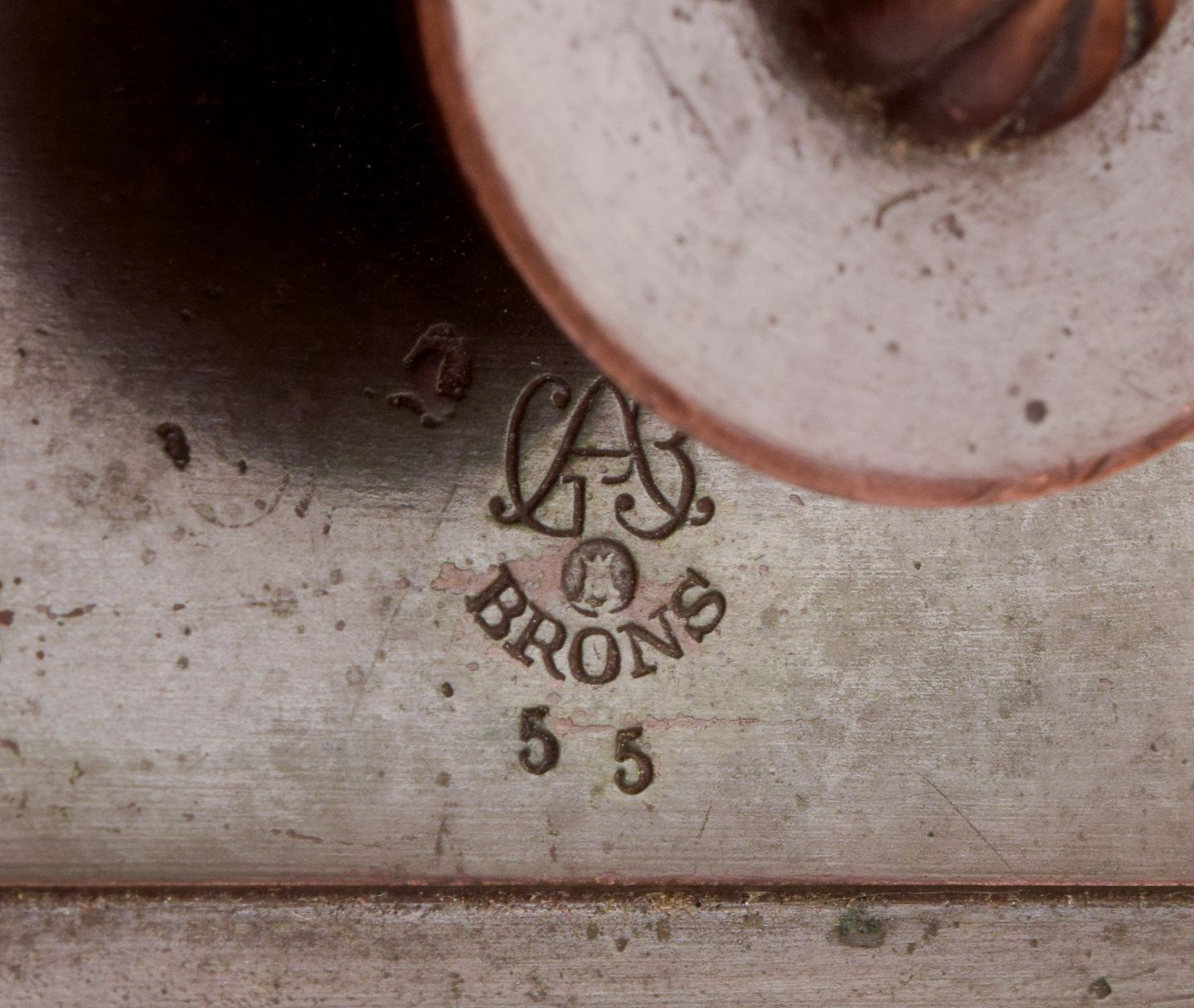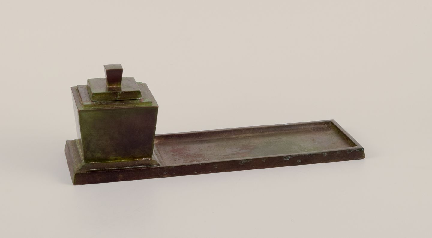 GAB, Sverige. Art Deco skrivetøj i massiv bronze. Med blækhus, pennebakke og blæksuger. Ca. 1930. Smuk patina. Perfekt stand. Stemplet. Mål: L 28,5 cm. x H 10.0 cm.
