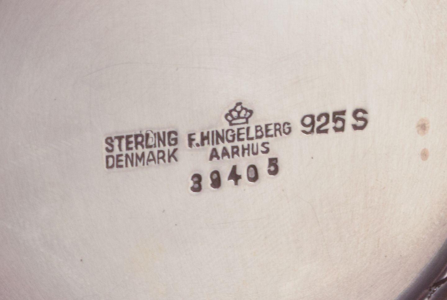Frantz Hingelberg, dansk sølvsmed. Modernistisk kande i sterlingsølv. Stilrent design. Midt 1900-tallet. Stemplet. Perfekt stand. Mål: H 20,5 cm. x D 7,5 cm.