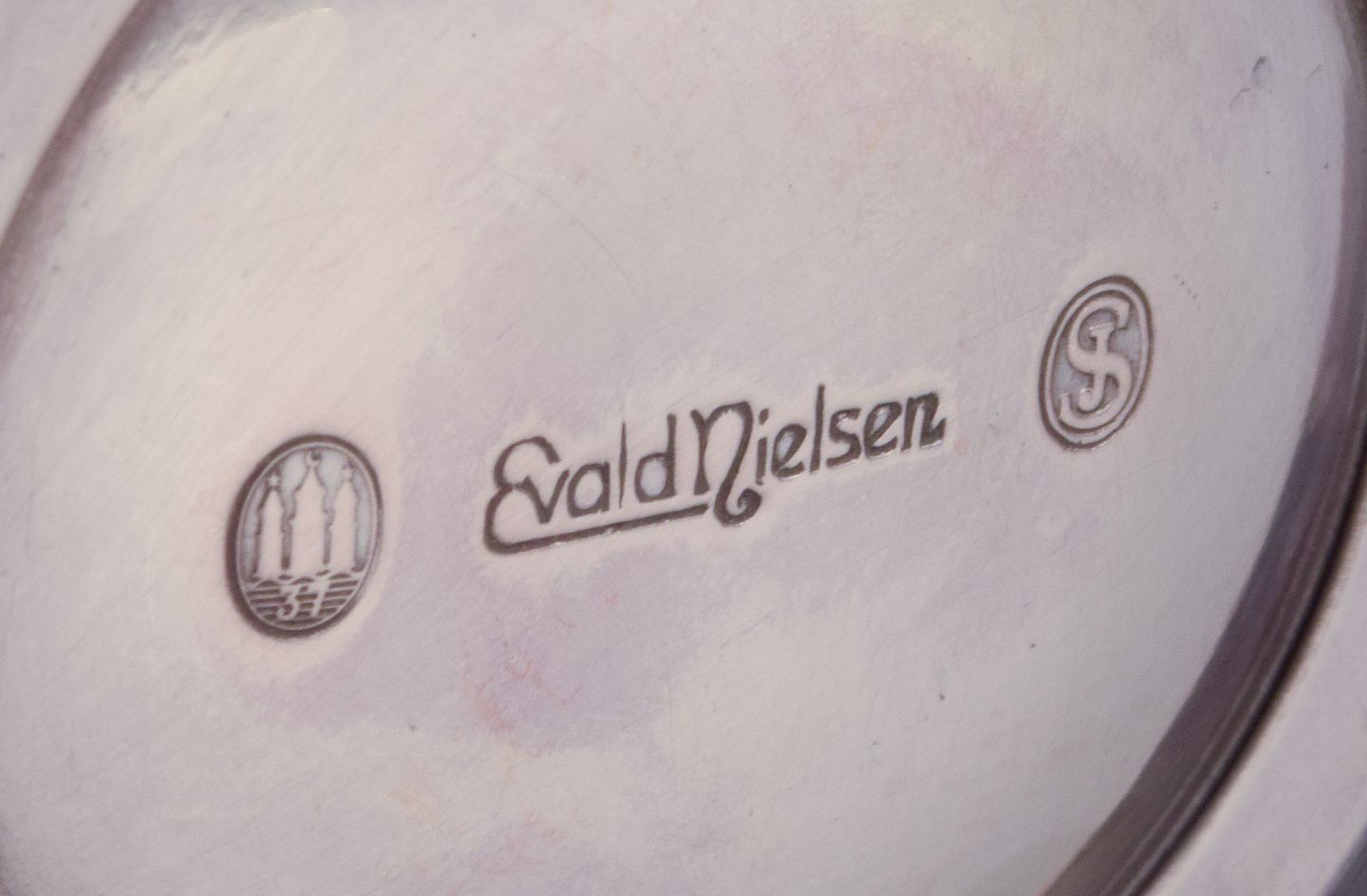 Evald Nielsen, dansk sølvsmed. Art Deco skål i tretårnet sølv (830).
