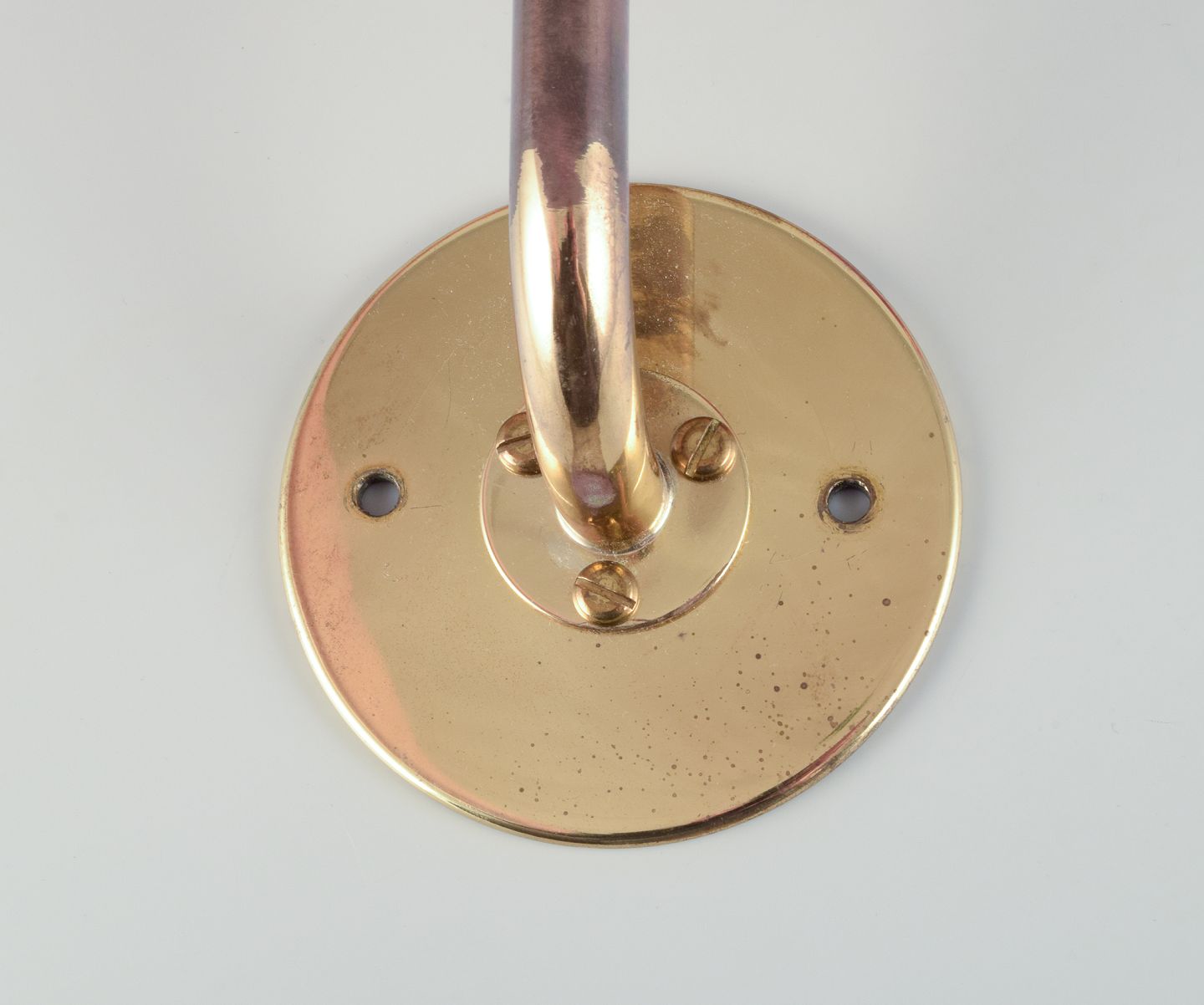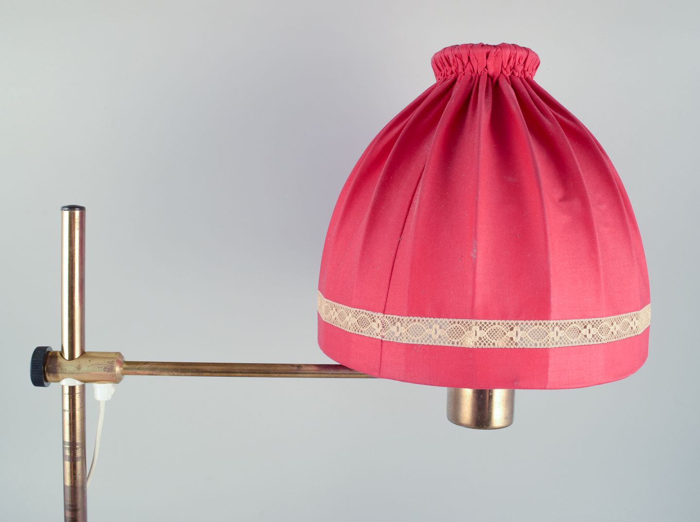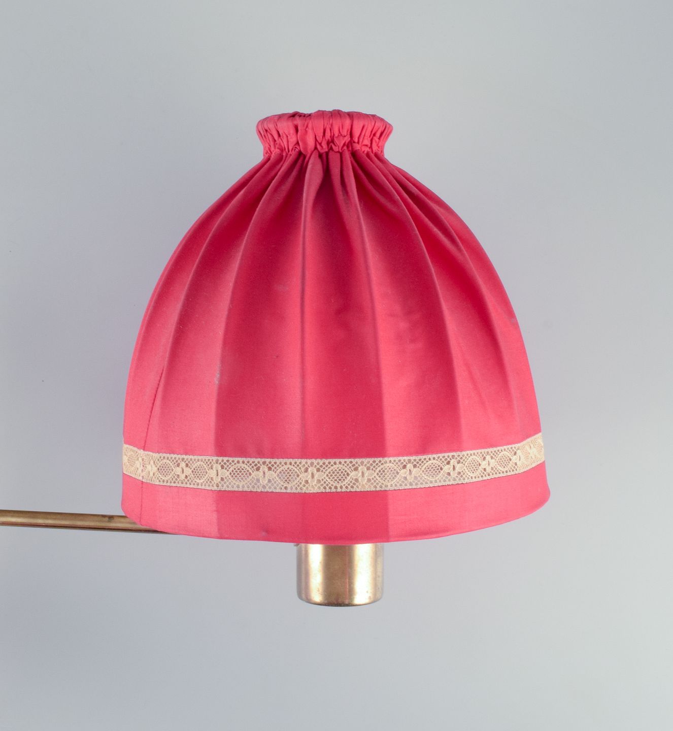 Hans Agne Jakobsson, svensk designer. Væglampe i messing med lampeskærm i rødt stof. Modernistisk design.