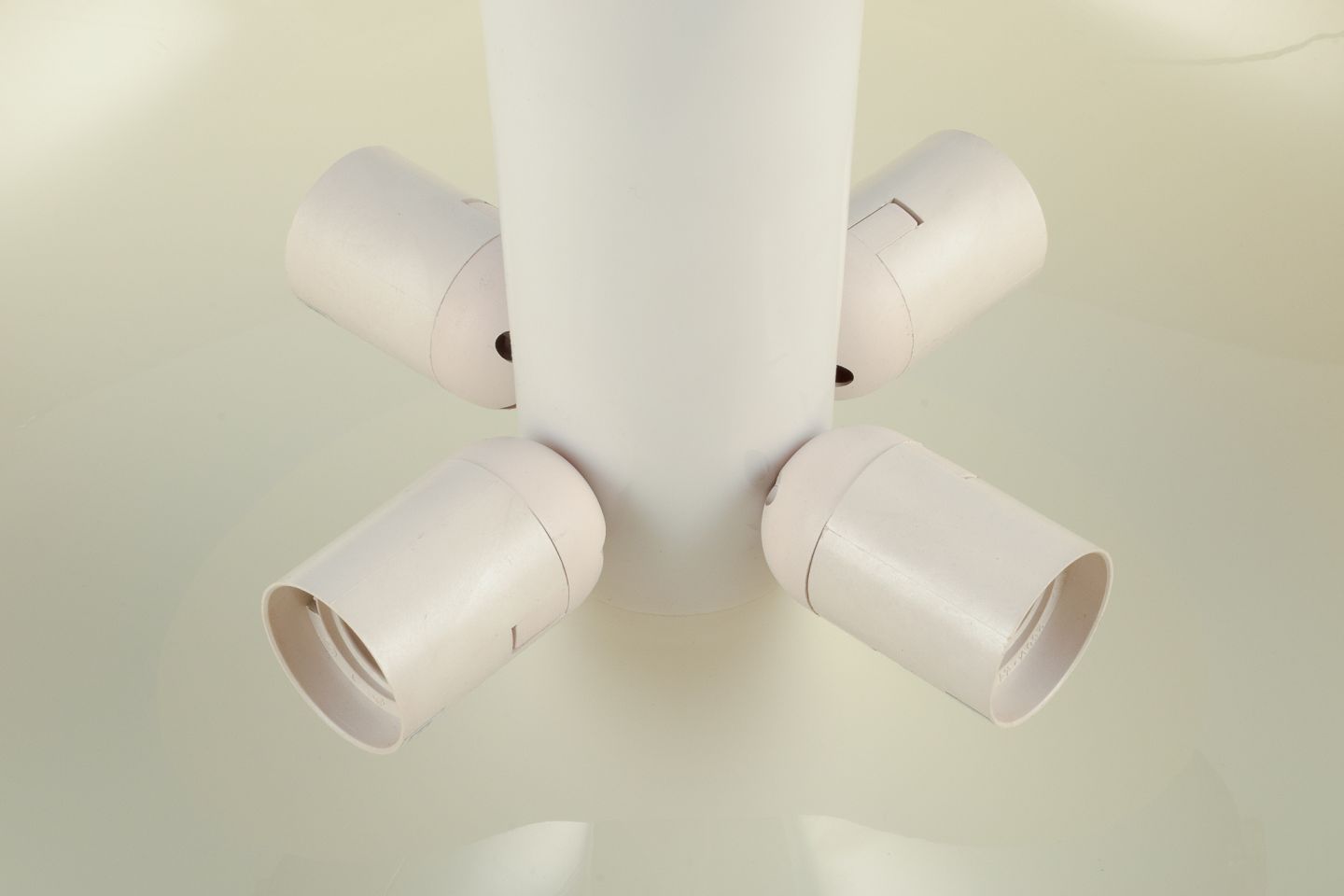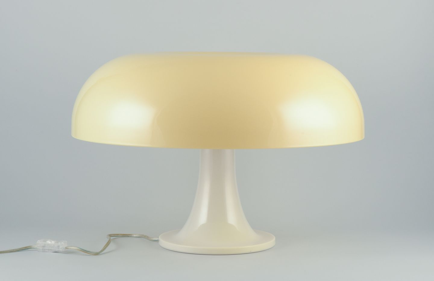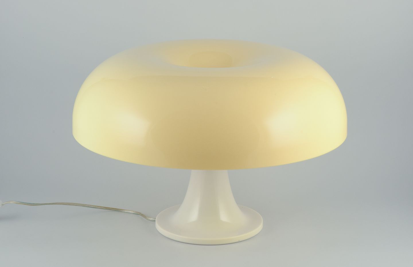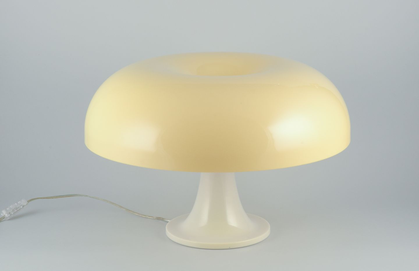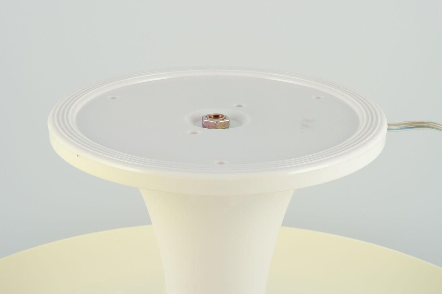 Giancarlo Mattioli, Nesso, Artemide, Italien. Retro vintage bordlampe i hvidt akrylplast. Fire udtag. Ca. 1980’erne. I flot stand. Gulnet skærm. E 27 Mål: D 52,0 cm. x H 34,0 cm.