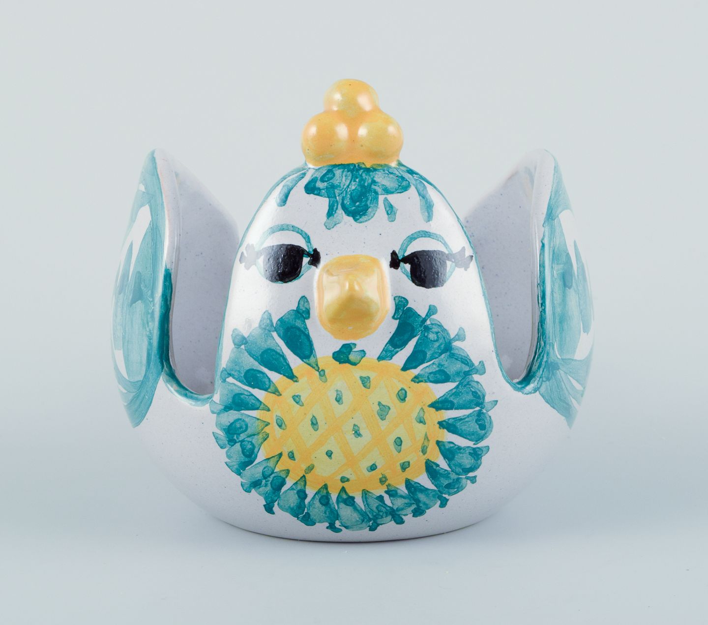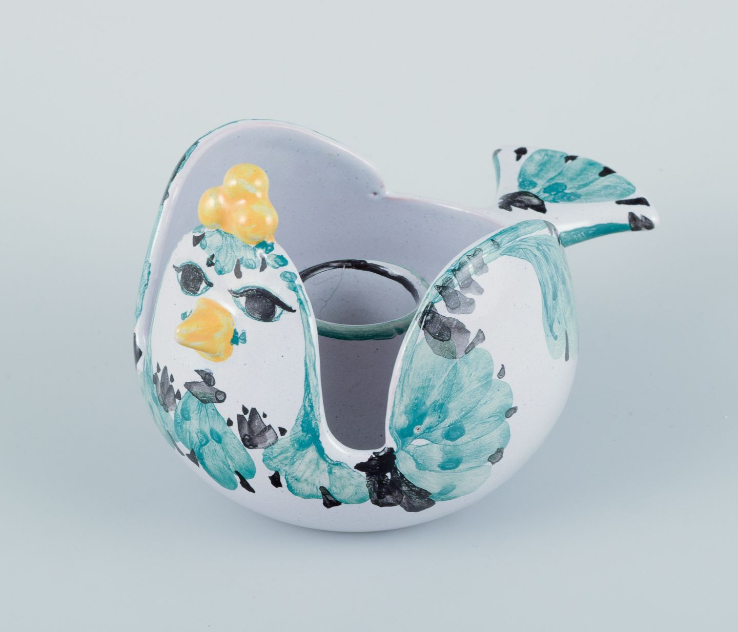 Bjørn Wiinblad (1918-2006) for Det Blå Hus (The Blue House), Denmark. A pair of candle holders shaped like birds. Glazed in green and yellow tones.