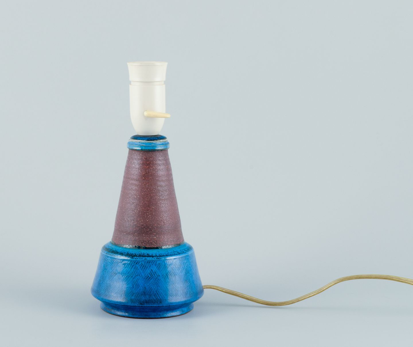 Nils Kähler for Kähler. Ceramic table lamp with turquoise glaze. Approximately 1970. Signed. In perfect condition. Dimensions: Height 25.5 cm including socket x Diameter 12.0 cm.