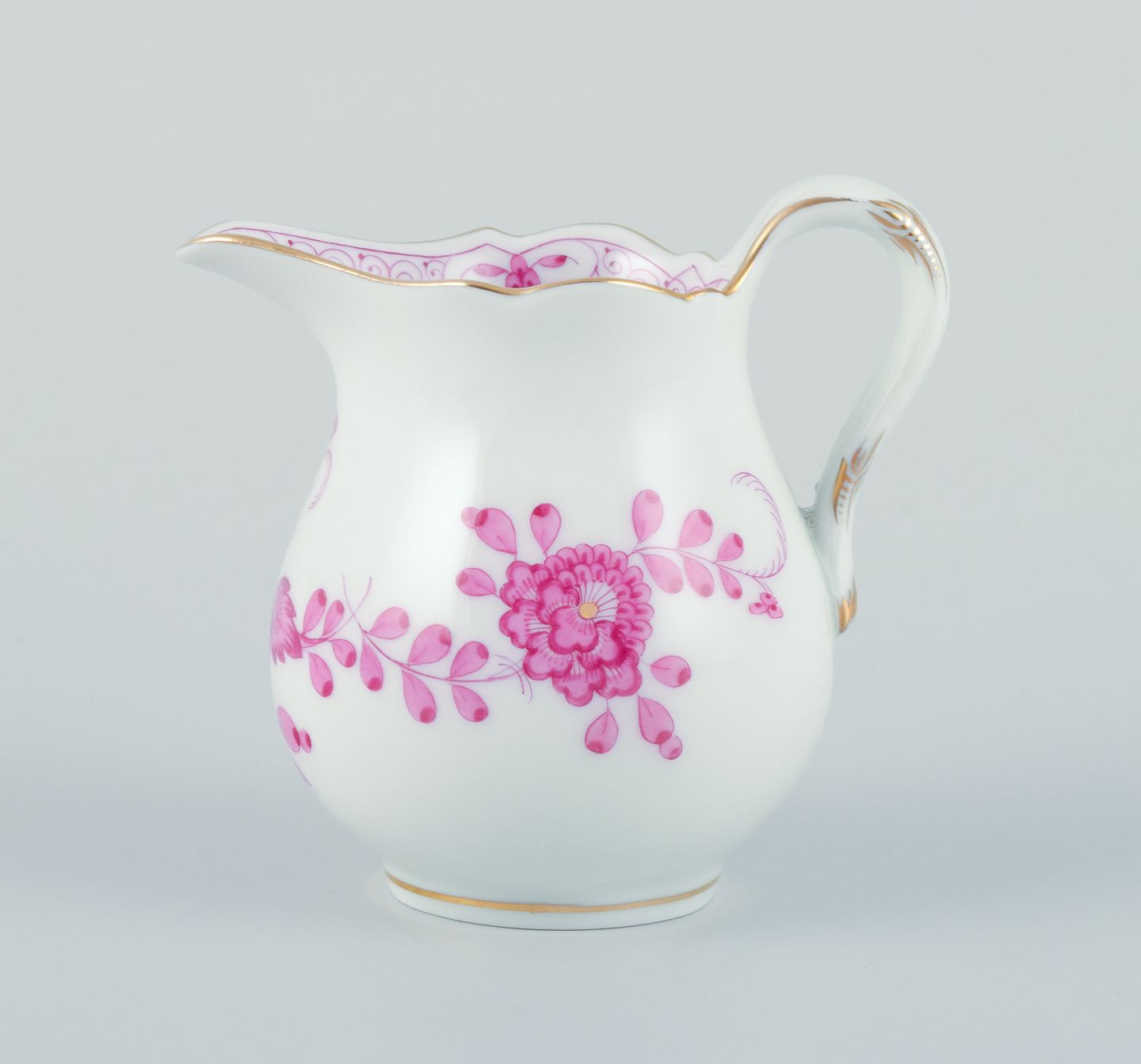 Meissen, Germany. Pink Indian sugar bowl and creamer in hand-painted porcelain.