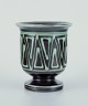 Kähler, Danmark. Lille vase og lille skål med hank udformet som en fugl. Håndlavet keramik. Vase med geometrisk mønster.