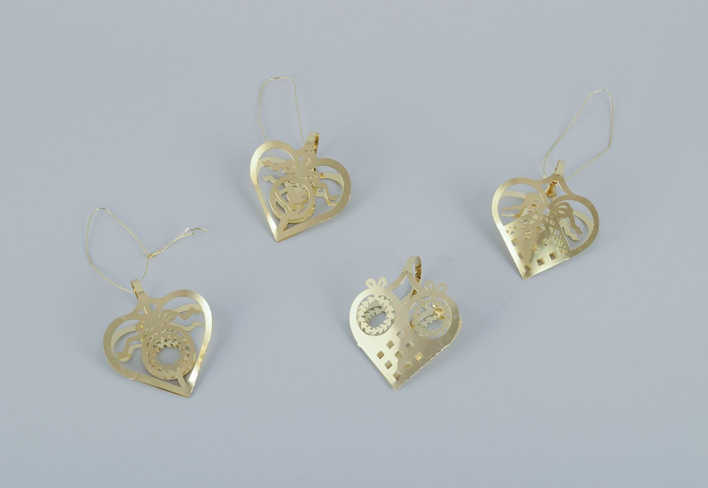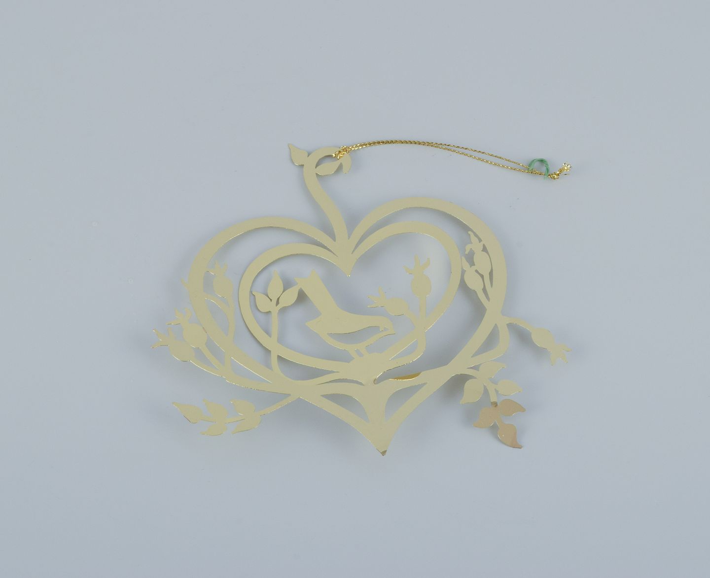 Royal Copenhagen ”Royal Christmas”. Ni juledekorationer i messing til ophæng på juletræ og i vinduet.