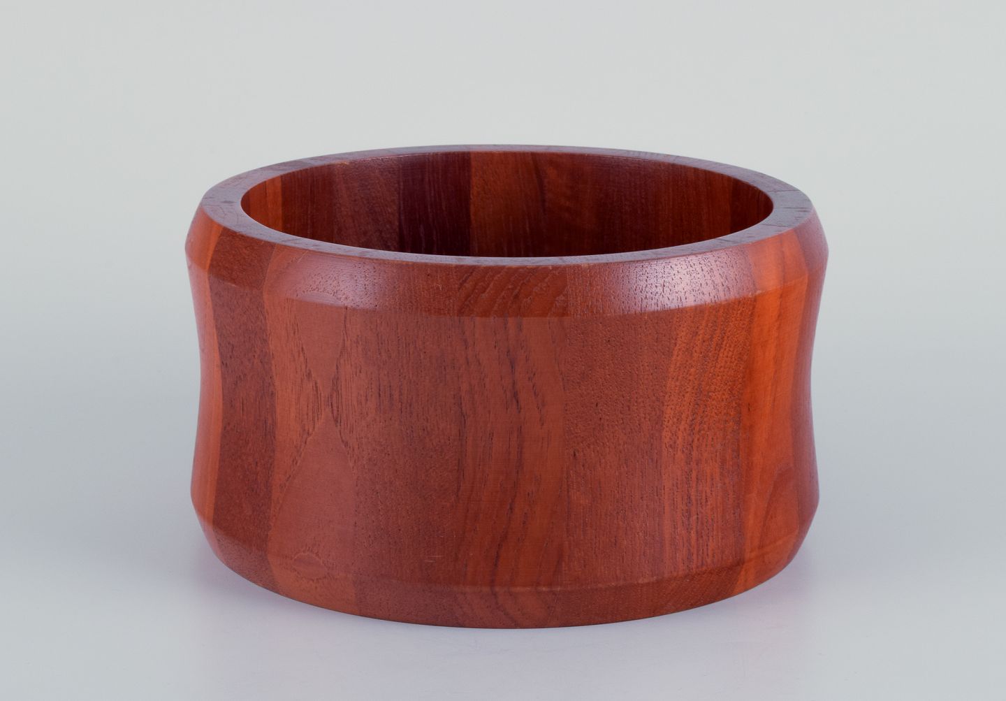 Kjeni, Danmark. Skål i teak. Stavlimet. Farvespil i træet. Dansk design. 1970’erne. Perfekt stand. Etiket. Mål: H 11,0 cm. x D 20,5 cm.
