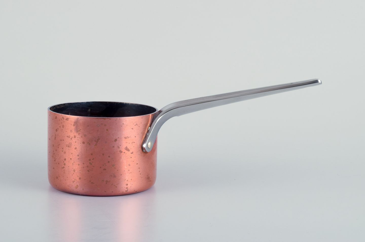 Henning Koppel for Georg Jensen. ”Taverne” smørkasserolle i messing og rustfrit stål. 1980’erne. Stemplet. I flot stand. Mål: H 6,4 cm. x D 8,0 cm. uden håndtag (22,0 cm med håndtag).