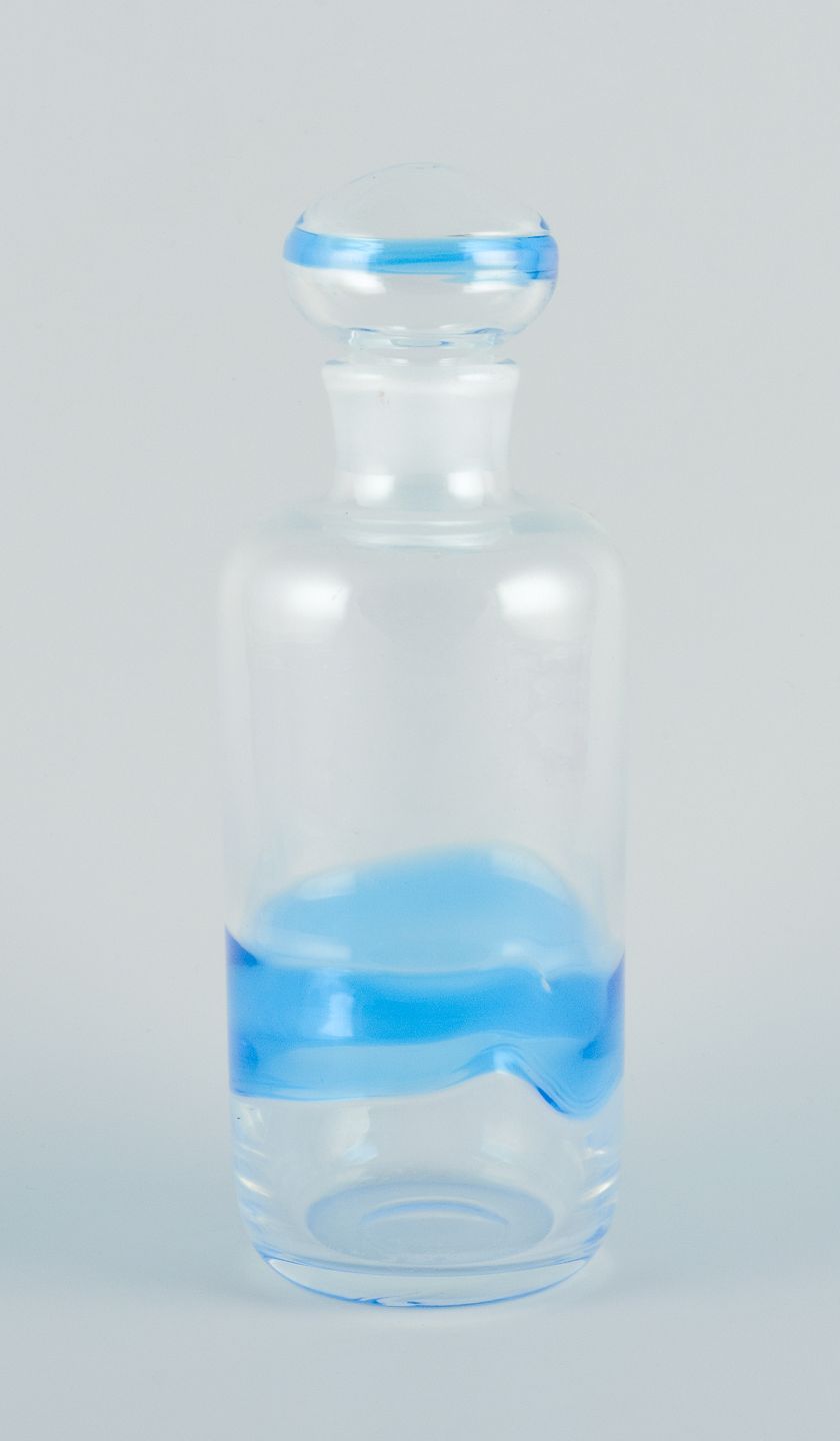 "Blå time" glaskaraffel i mundblæst glas af Christer Holmgren for Holmegaard. 1960’erne. I flot stand med kalk indvendigt. Mål: H 25,0 cm. x D 8,5 cm.