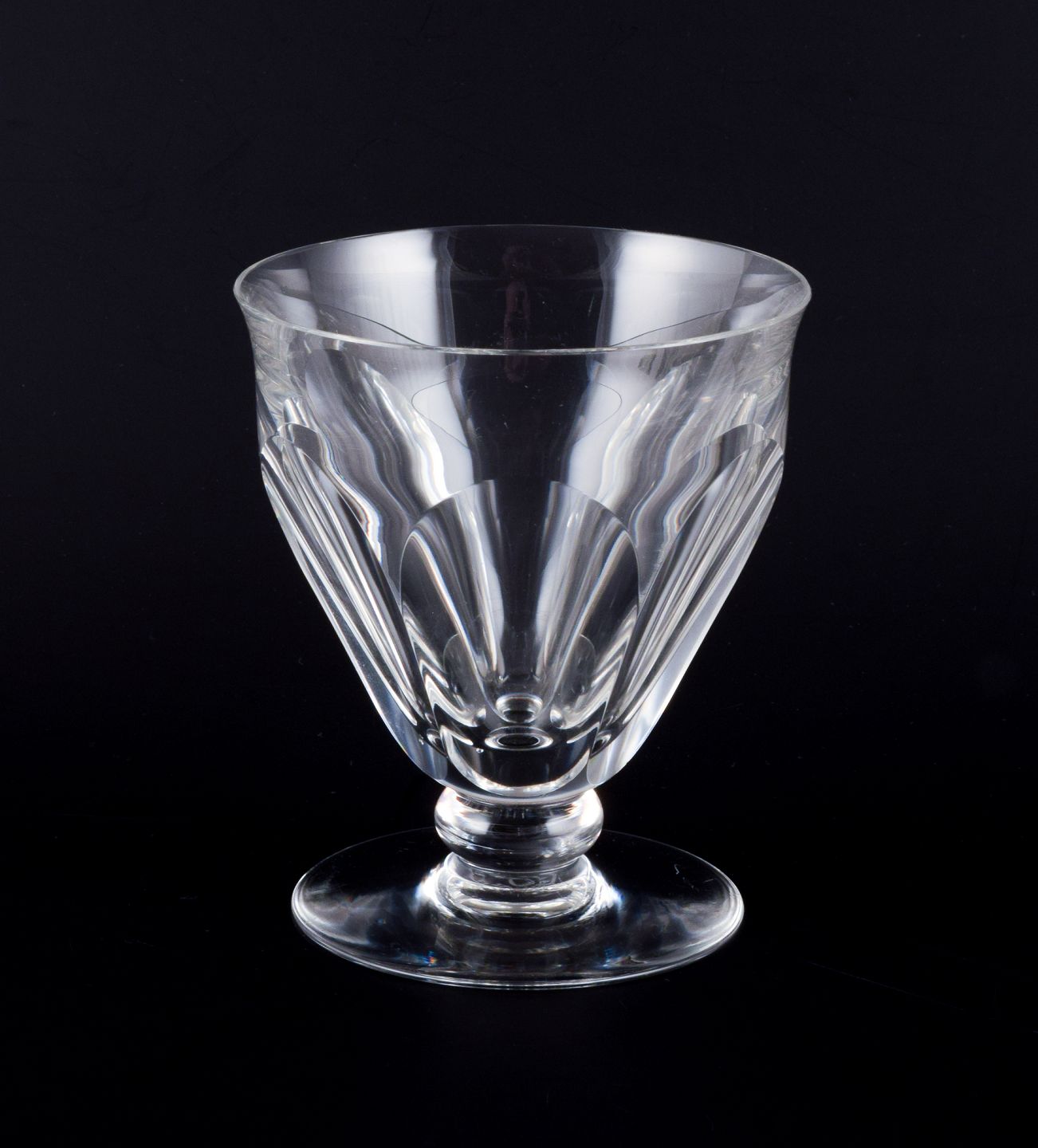 Baccarat, Frankrig. Et sæt på tre Art Deco rødvinsglas i facetslebet krystalglas. 1930/40’erne. Stemplet. Perfekt stand. Mål: D 9,5 cm. x H 11,0 cm.